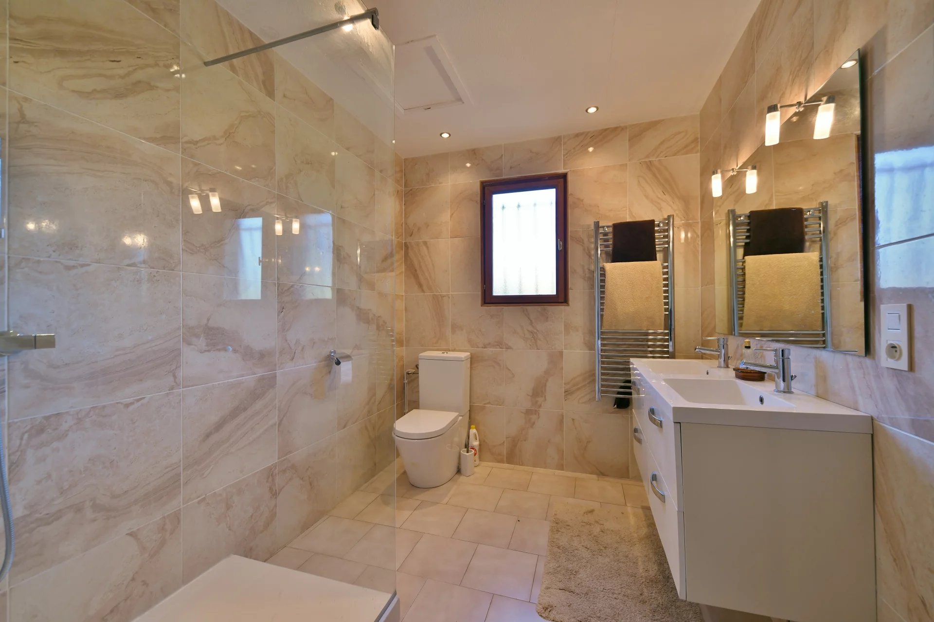 Cet espace de vie généreux et harmonieux, agrémenté d’une cheminée foyer fermé, dessert d’un coté quatre chambres confortables ainsi que deux salles de bain.