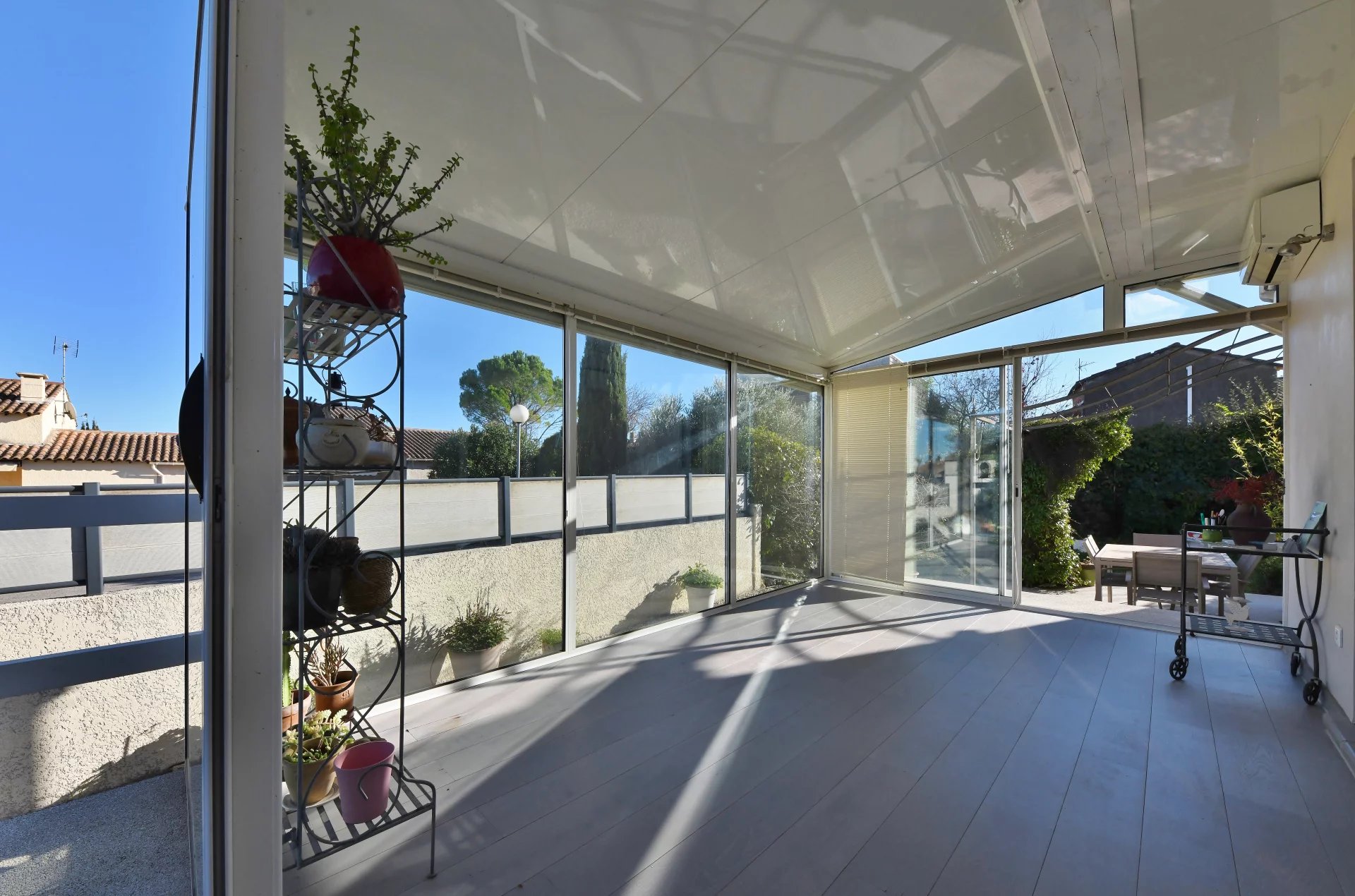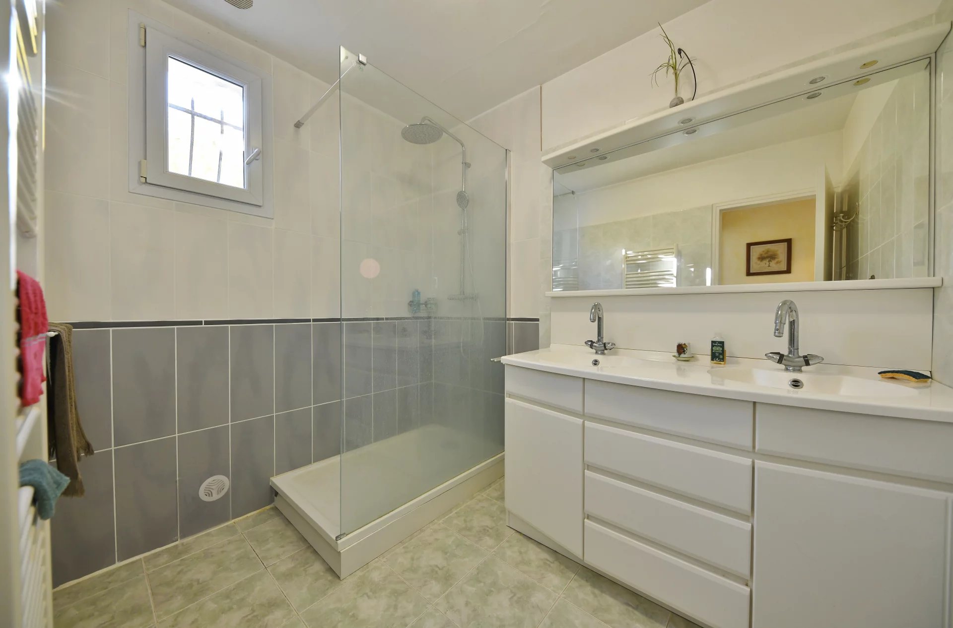 Garage, deux portails d’accès, terrasses autour de la maison et jardin piscinable.