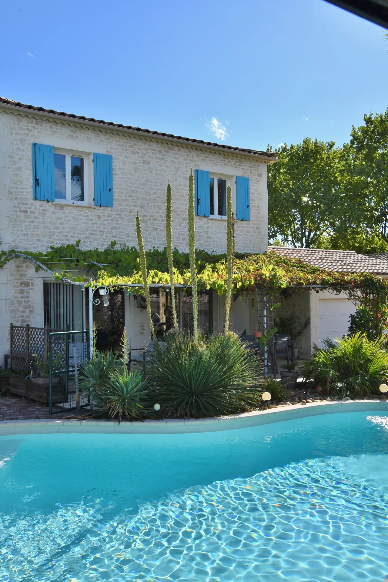 Les prestations: piscine chauffée et sécurisée, coin spa, espace de rangement outils de jardin, chalet de jardin, vide sanitaire, gouttières, portail motorisé, alarme, ballon d’eau chaude thermodynamique, climatisation réversible dans chaque pièce, assainissement collectif. Connexion à la fibre.