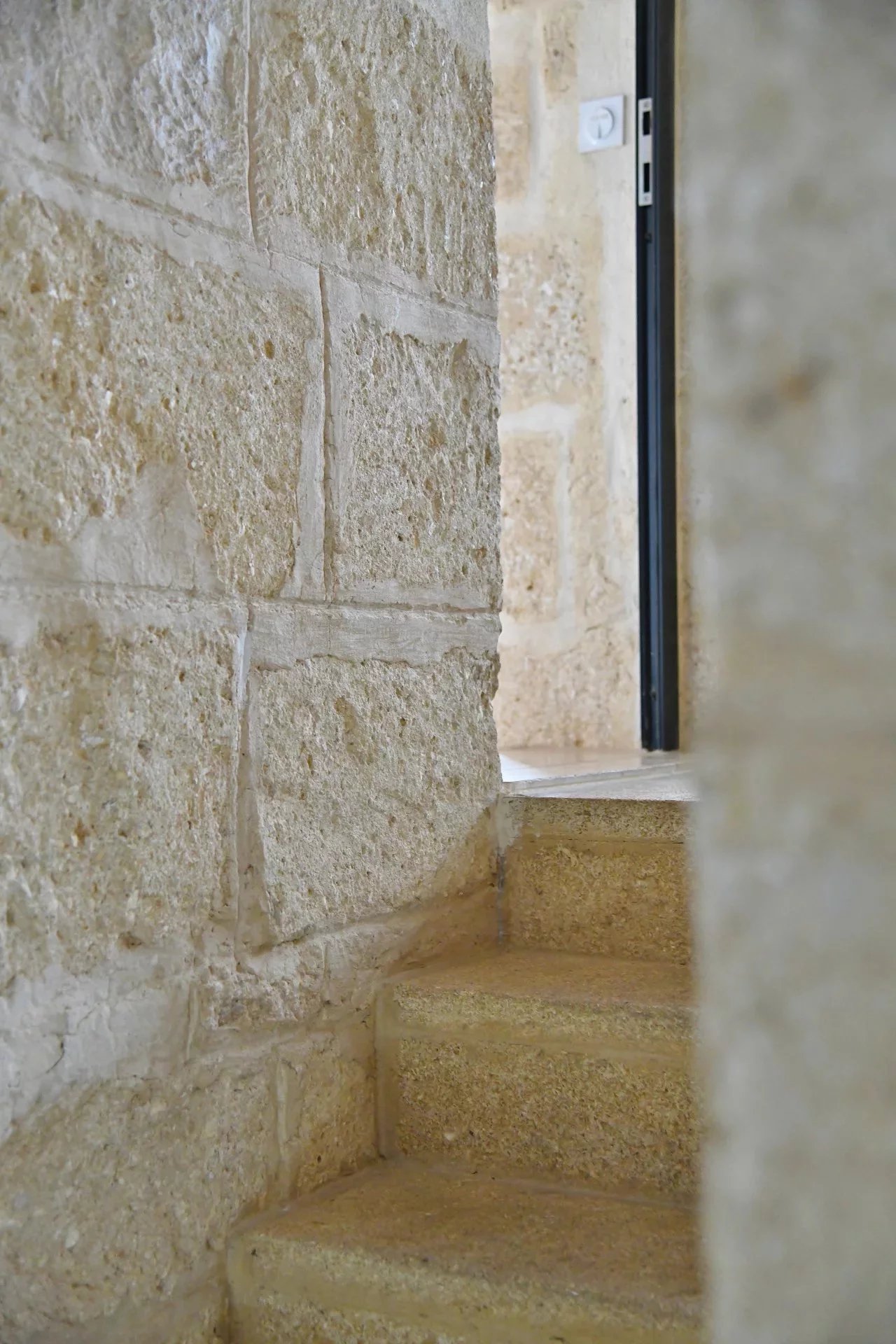 Le porche d’entrée s’ouvre sur une cour paysagée avec terrasse couverte. De plain-pied se trouvent un bel espace de réception comprenant un salon cathédrale, une salle à manger, une cuisine équipée ouverte sur la cour, ainsi qu’un cabinet d’invités. Un ascenseur et un escalier en pierre desservent les étages.