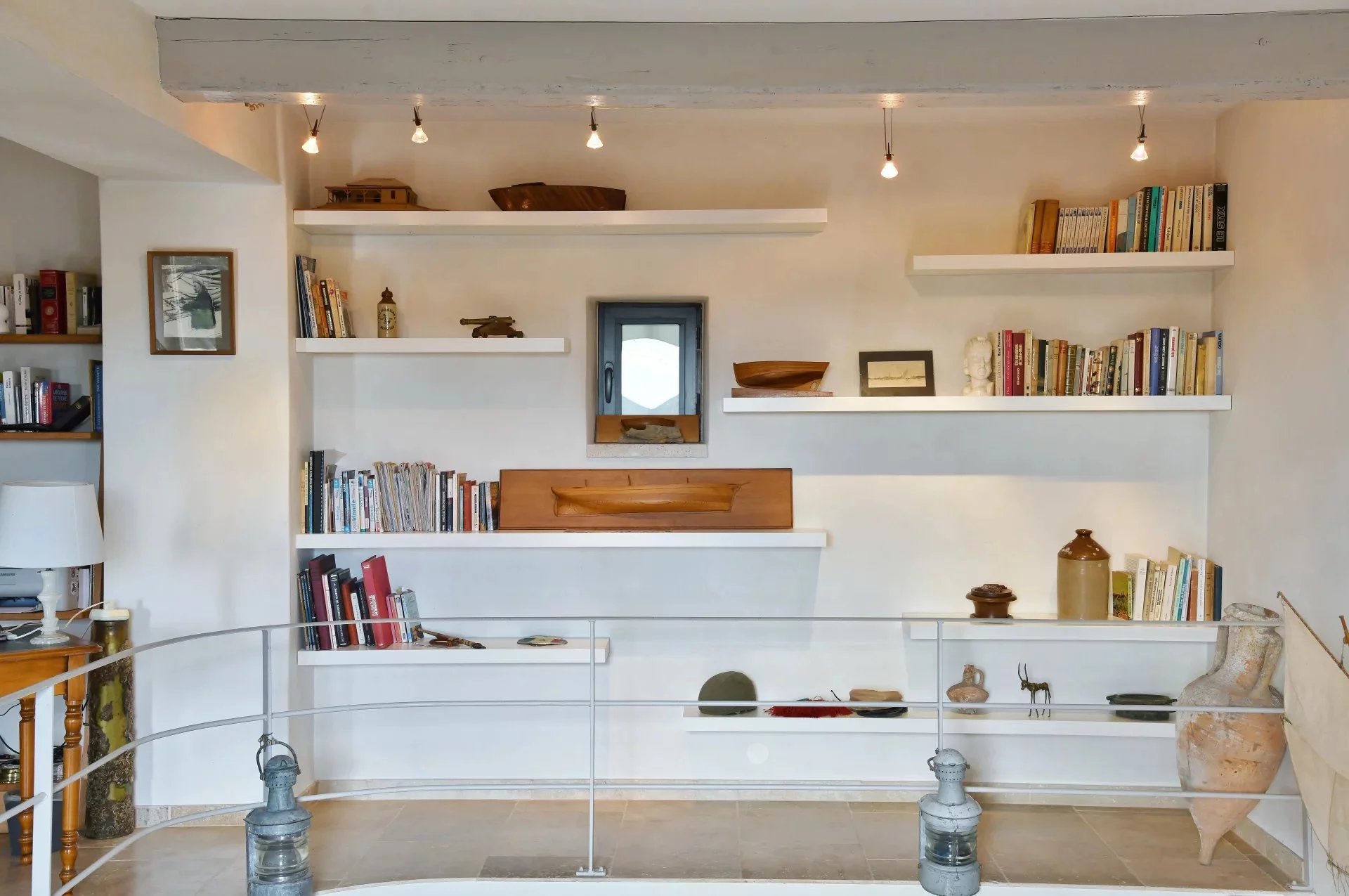 Au deuxième étage, un salon bibliothèque (ou troisième chambre), une salle de bains et une chambre s’ouvrent sur une terrasse avec vue sur la campagne et le Pont du Gard.