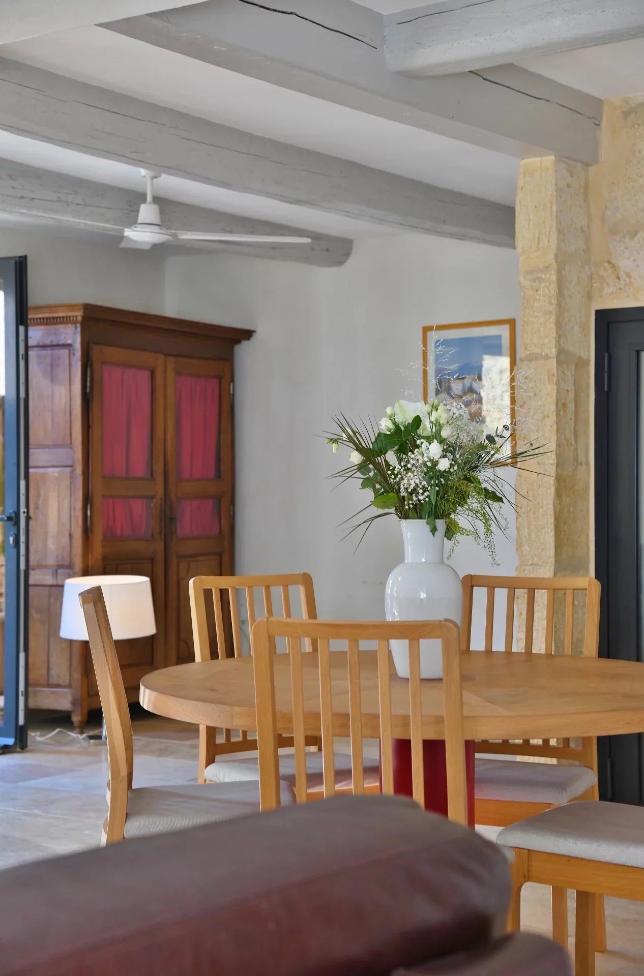 À quelques mètres, un ensemble indépendant abrite un espace piscine avec salle de bains d’été, ainsi qu’un triple garage de 60 m², aménageable en appartement d’invités.