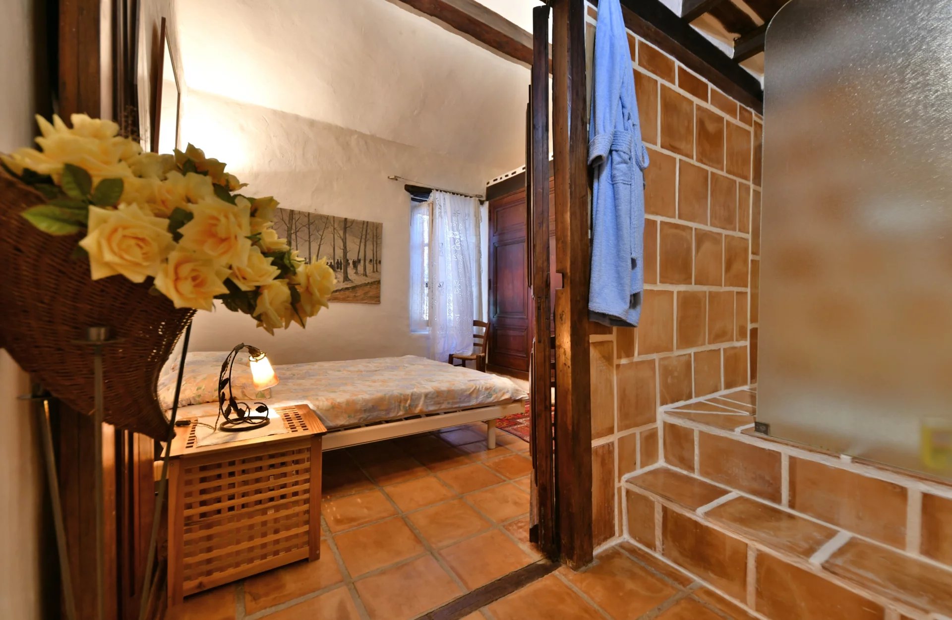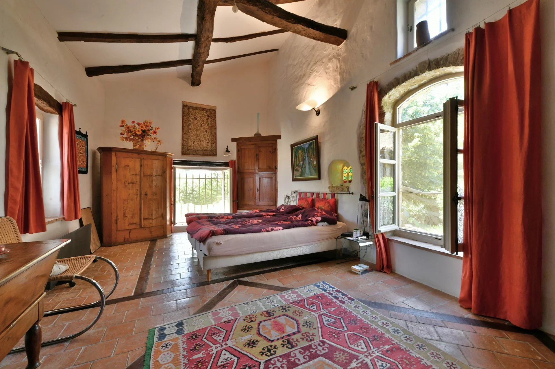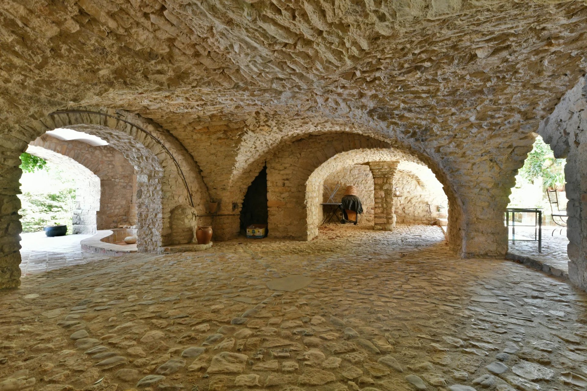 Très beau mas de village de 280 m², sur de sublimes voutes du 12e siècle, ouvertes sur le jardin avec appartement d’invités indépendant : Séjour et cuisine, 1 chambre et une salle de bains.