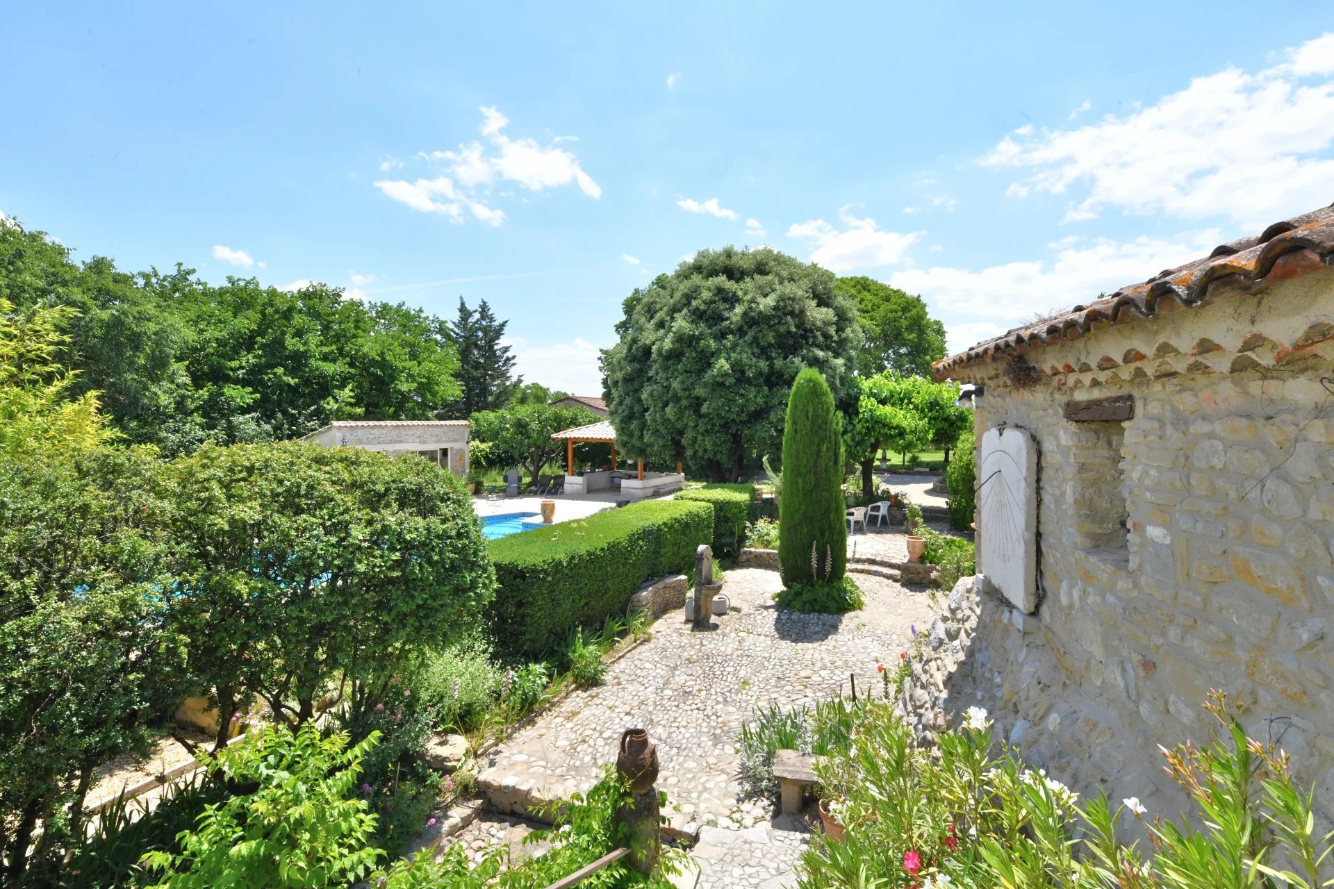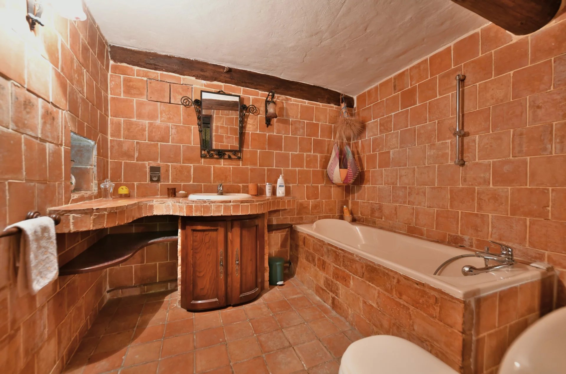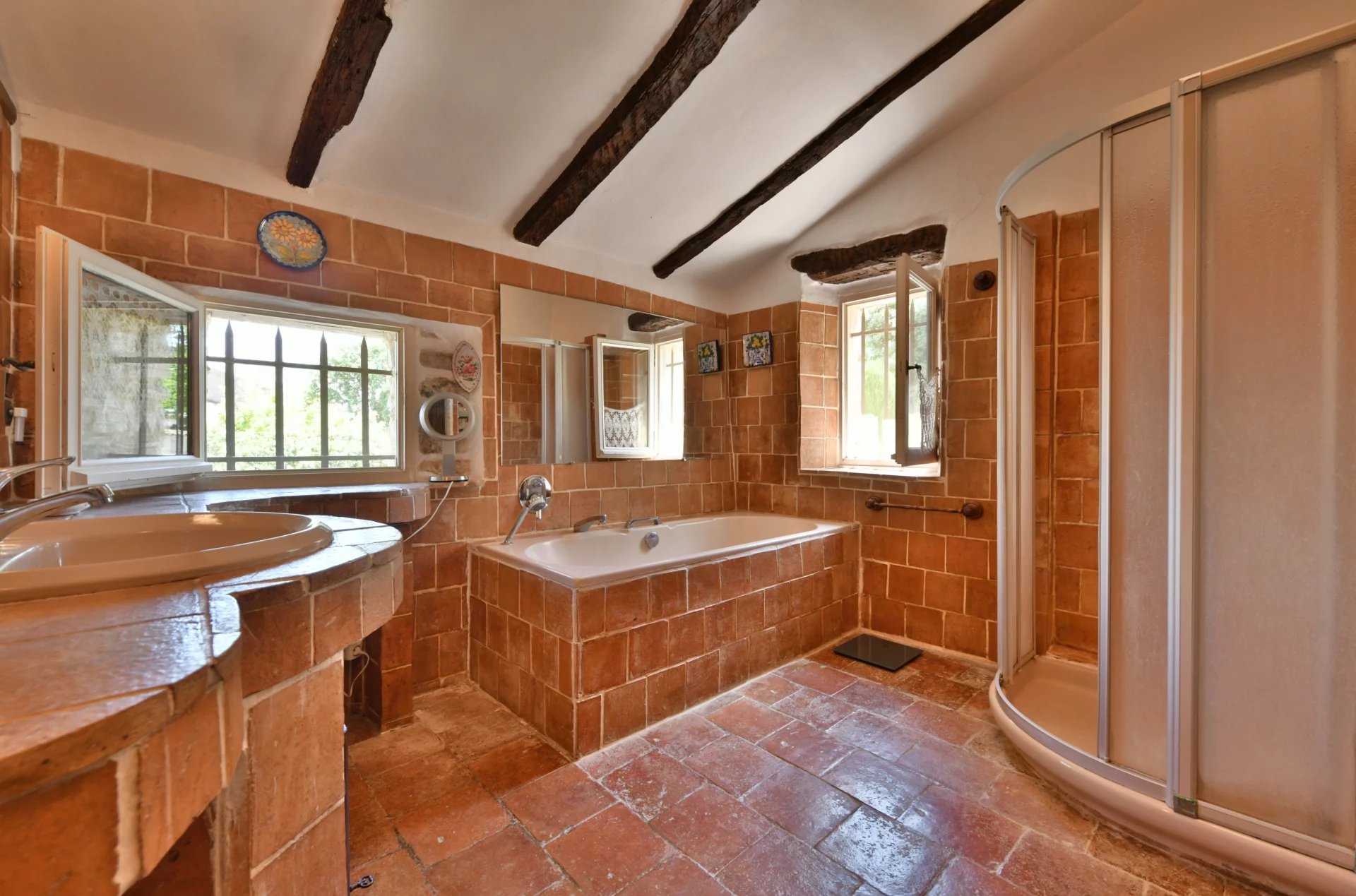 Très beau mas de village de 280 m², sur de sublimes voutes du 12e siècle, ouvertes sur le jardin avec appartement d’invités indépendant : Séjour et cuisine, 1 chambre et une salle de bains.