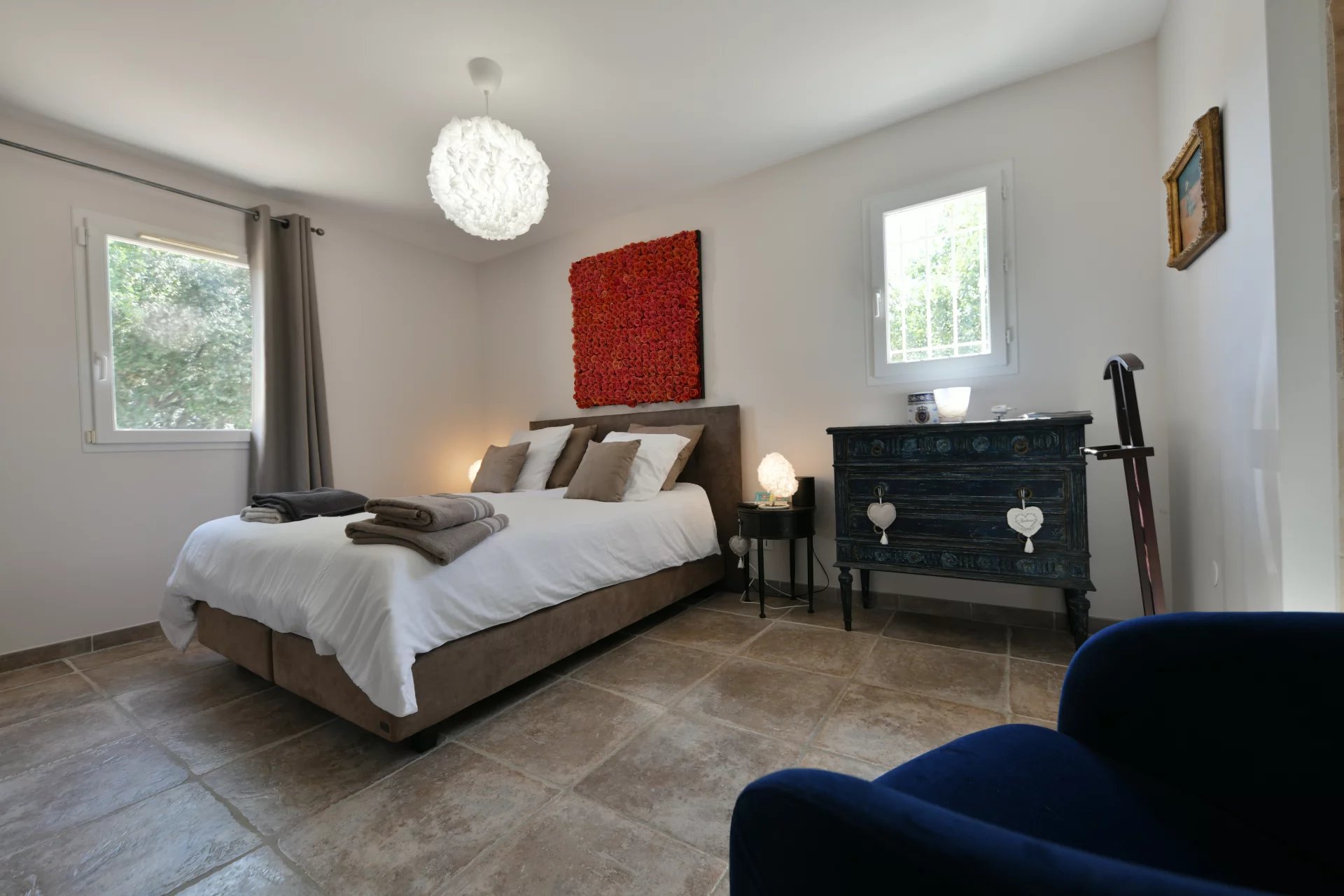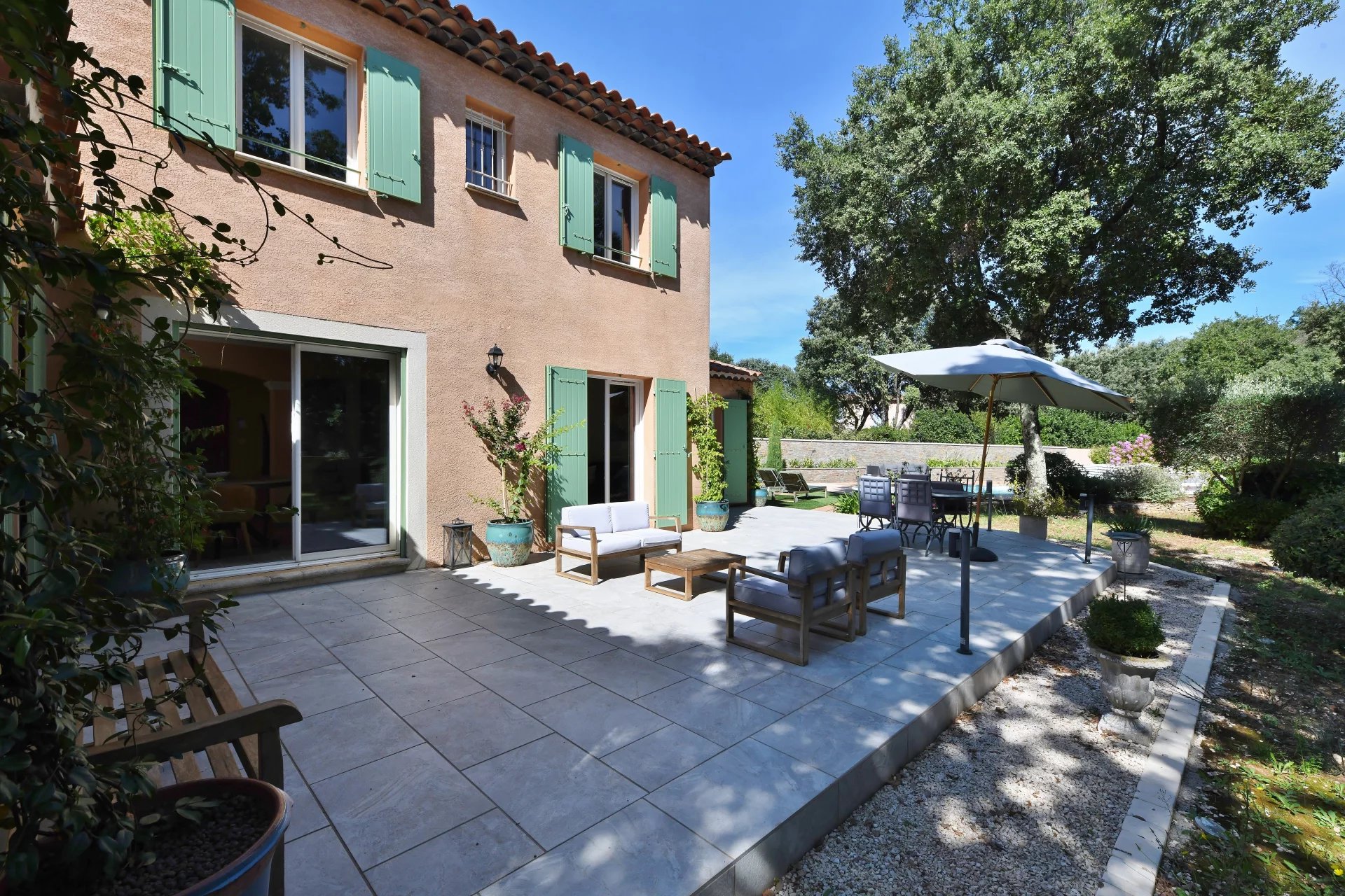 Les prestations: climatisation réversible dans chaque pièce, adoucisseur d’eau, éclairage extérieur, piscine sécurisée, portail motirisé, alarme, connexion à la fibre.