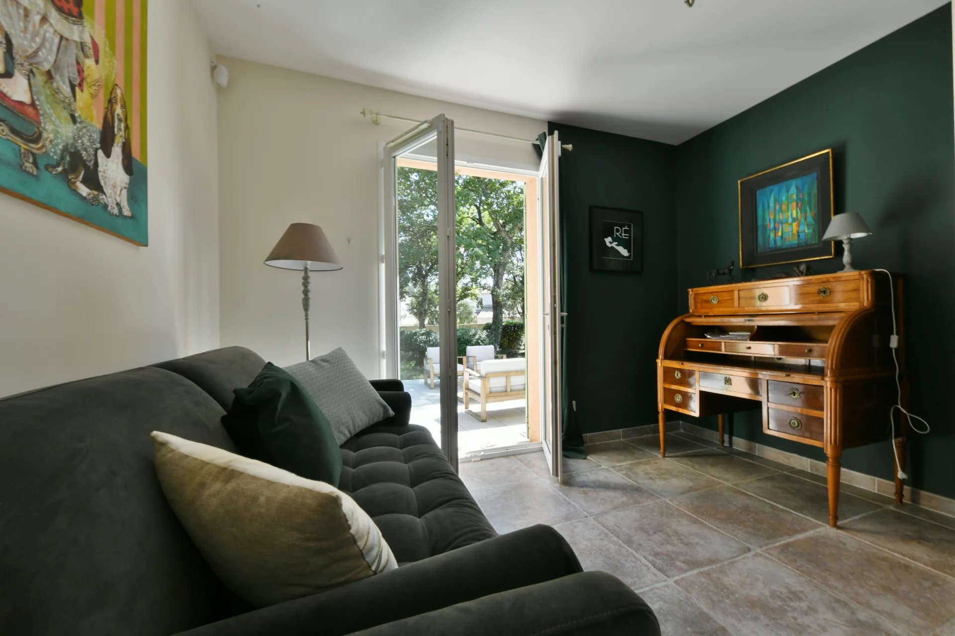 Elevée d’un étage sur rez-de-chaussée, elle se compose de plain-pied d’un bel espace de vie, spacieux et lumineux ouvrant sur le jardin, une cuisine entièrement équipée, un bureau, un salon-bibliothèque pouvant devenir une chambre supplémentaire.
