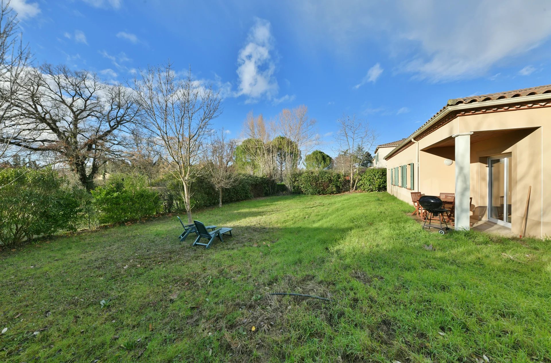 De plain-pied, cette maison offre un vaste salon traversant de 37 m² ouvert sur le jardin par des portes fenêtres, associé à une cuisine de 10.5 m². 4 belles chambres, ainsi qu’un salle de bains et une salle d’eau. Garage. Abri voiture, double vitrage, volets roulants électriques.