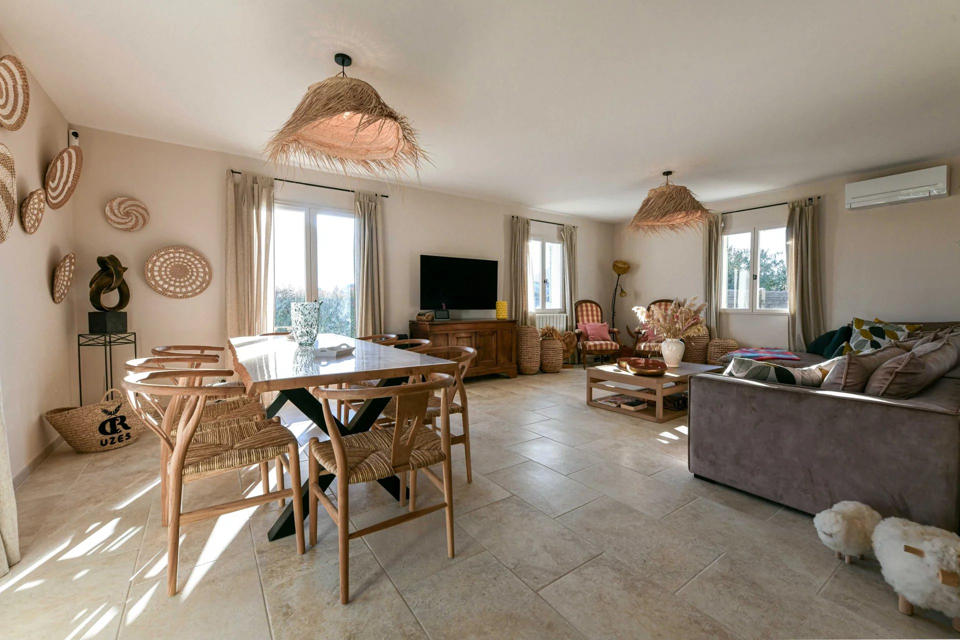 Cette propriété méridionale de plain-pied a fait l’objet d’une restauration d’envergure en 2023 qui lui confère un confort de vie contemporain, tout en se plaçant à 1 km du secteur sauvegardé d’Uzès.