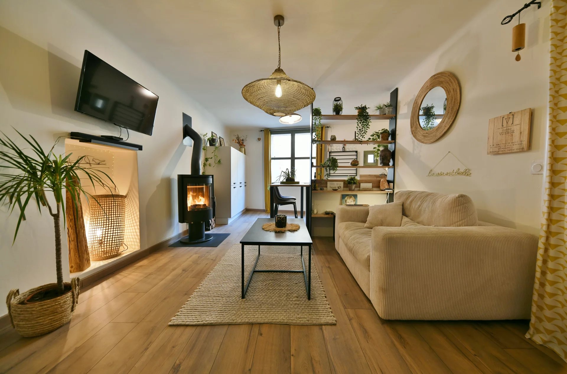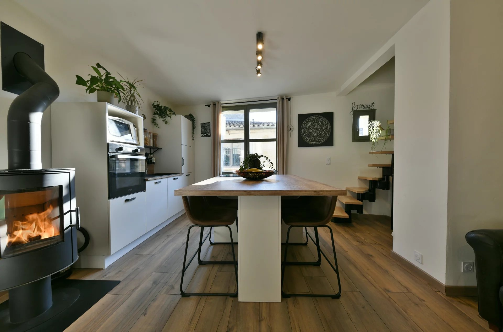 Cette maison de ville offre un confort de vie moderne, poêles à bois, double vitrage, DPE en B, allié au charme de l’ancien, maison en pierre de taille.