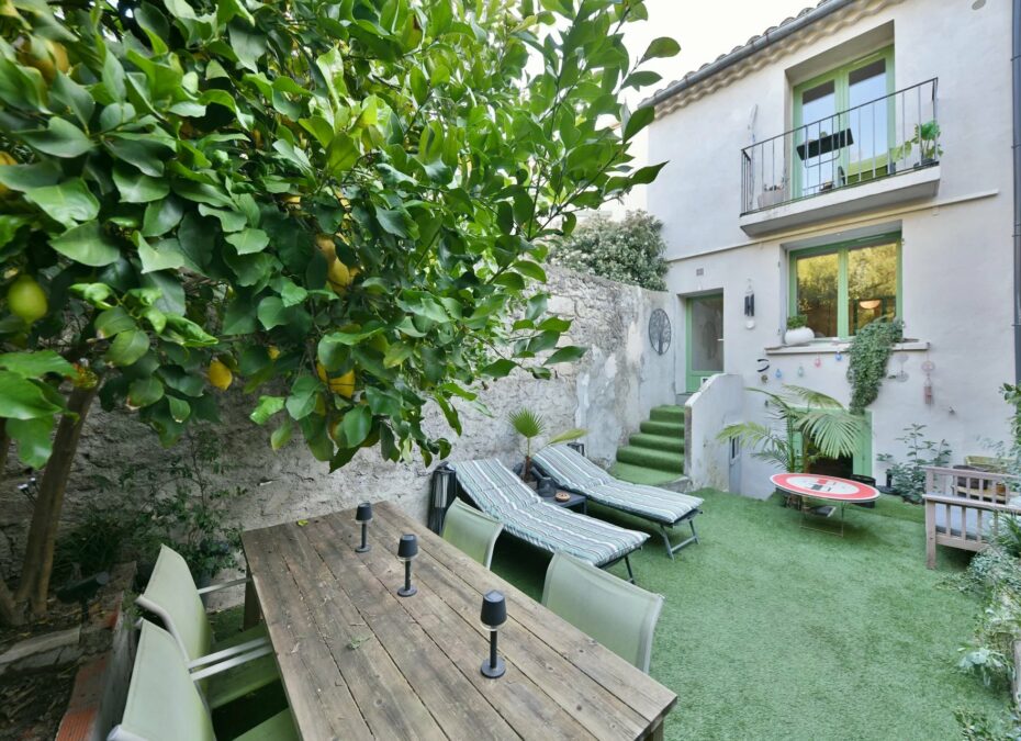 Située au cœur d’Uzès, cette charmante maison de ville offre de confortables volumes, de belles prestations et une cour arborée et aménagée.