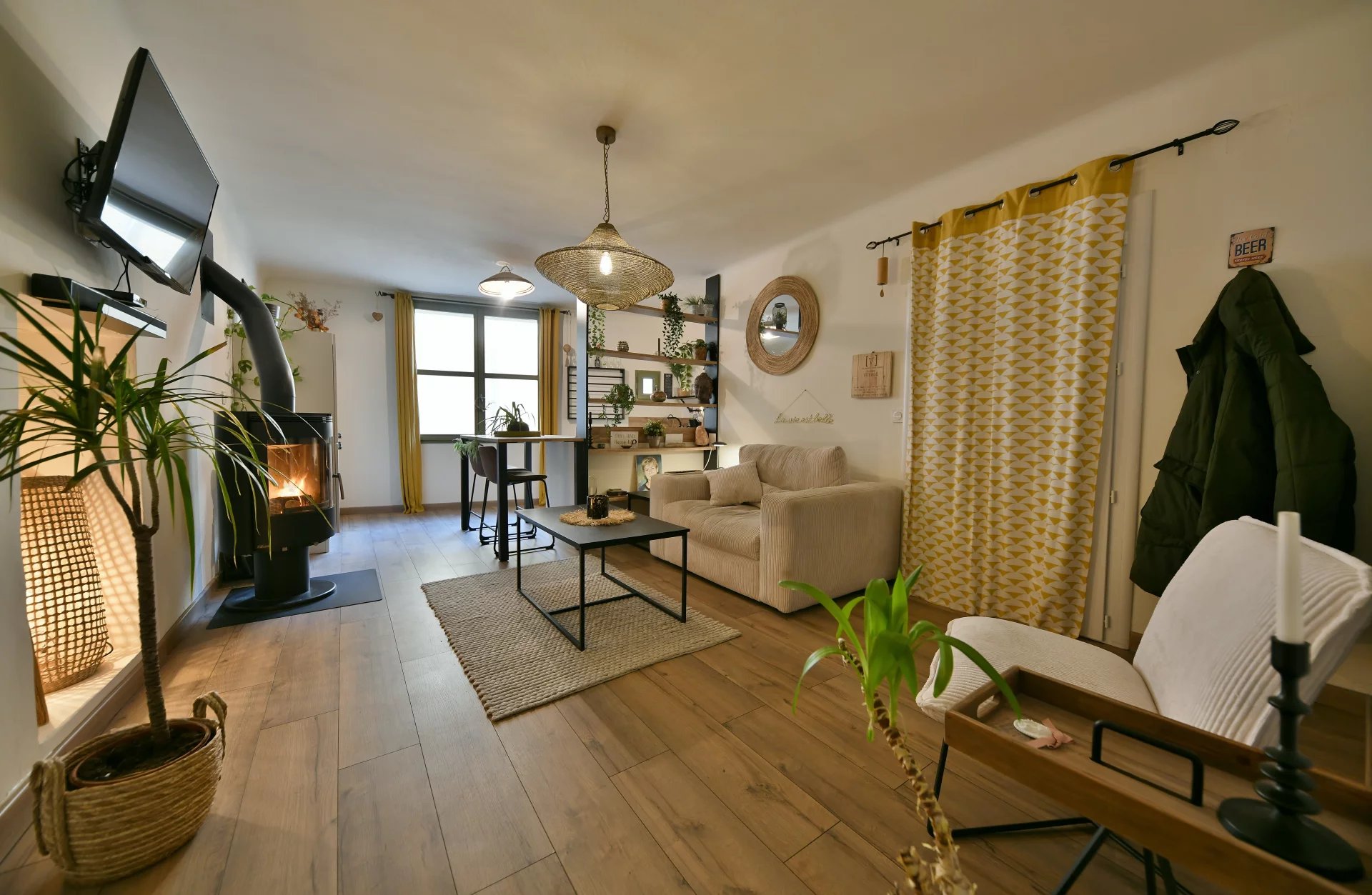 Cette maison de ville offre un confort de vie moderne, poêles à bois, double vitrage, DPE en B, allié au charme de l’ancien, maison en pierre de taille.