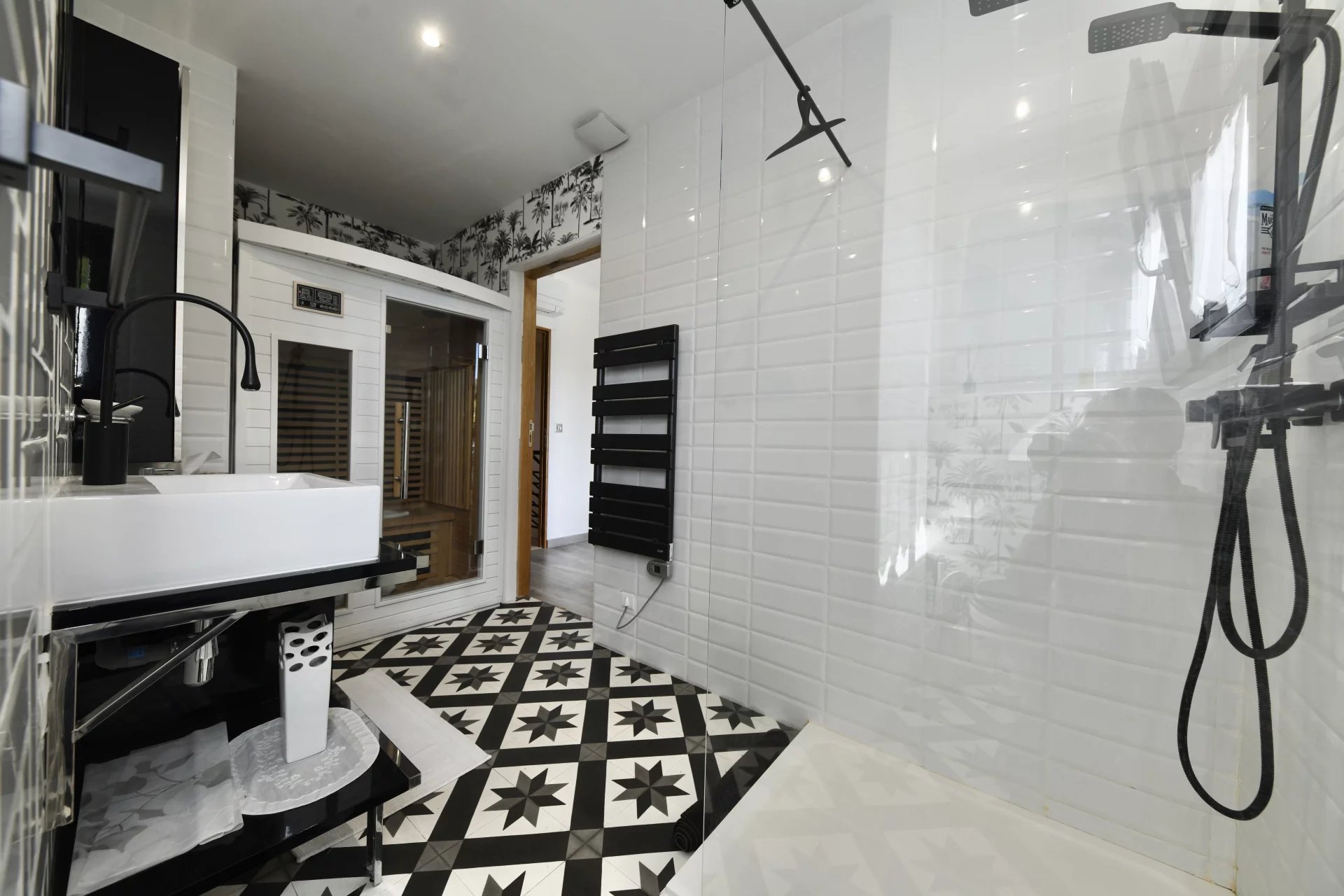 Au rez de chaussée, un agrandissement offre un potentiel d’aménagement en pièce de loisirs ou création de gîte, tandis qu’un petit appartement sur deux niveaux permet d’accueillir famille, amis ou une activité de location saisonnière.