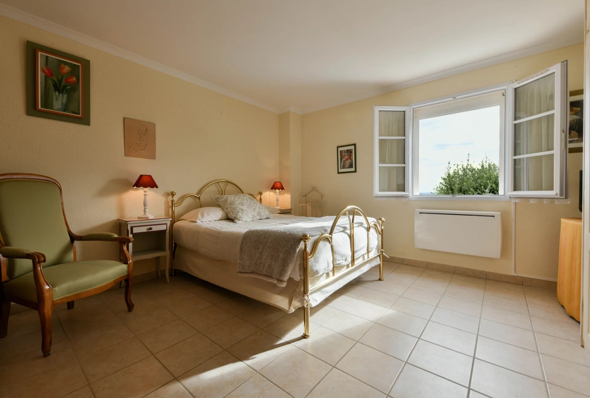 The entrance opens onto a large reception area (60 m²) illuminated by large bay windows offering a pleasant view of the garden and swimming pool. The fitted kitchen opens onto a comfortable dining room. Adjacent to this is a TV lounge area with a fireplace insert, which leads to a first sleeping area on the same level. This separate area comprises three bedrooms with fitted wardrobes, a large bathroom and a shower room. The entrance hall also leads to the upper floor, which has a surface area of 45 m² and currently comprises a large bedroom (19 m²), a bedroom (16 m²) with a terrace and a guest toilet.