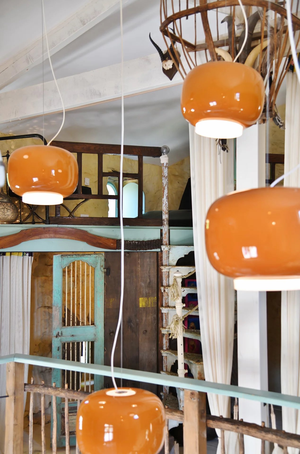 On the ground floor, life is organized around an open kitchen to the dining room, a large bathroom, and a bedroom. Climb upstairs, and be surprised: two atypical sleeping areas, a lounge corner, and a reading space make up an intimate and characterful level, where every nook invites relaxation.