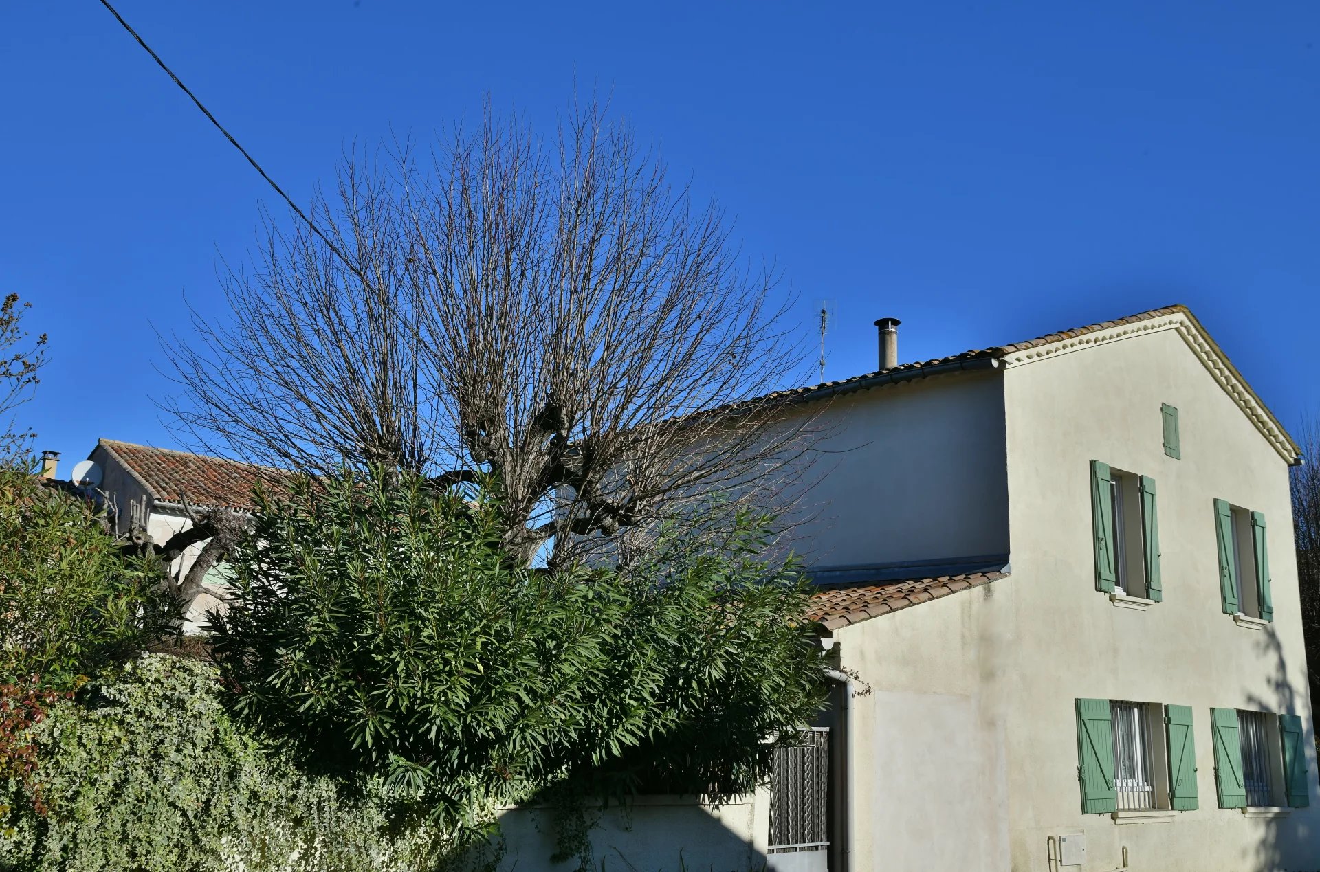 Upstairs, three comfortable bedrooms (11, 11.5 and 14 m²) share a large 11 m² bathroom as welle as a shower room. Pretty little garden with trees, approx. 43 m². This authentic, detached house, which is very bright, is located in a village 20 minutes from Uzès.
