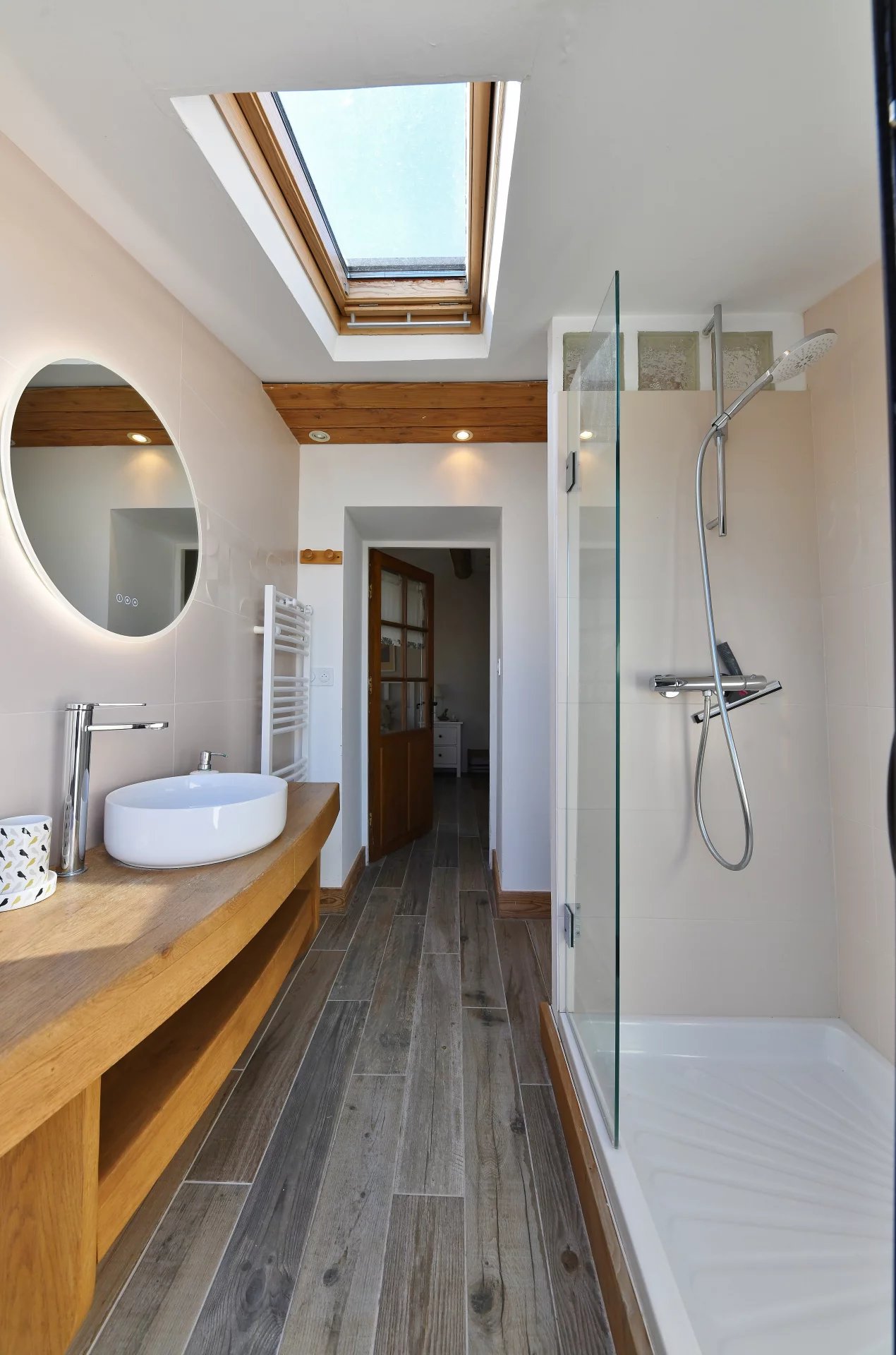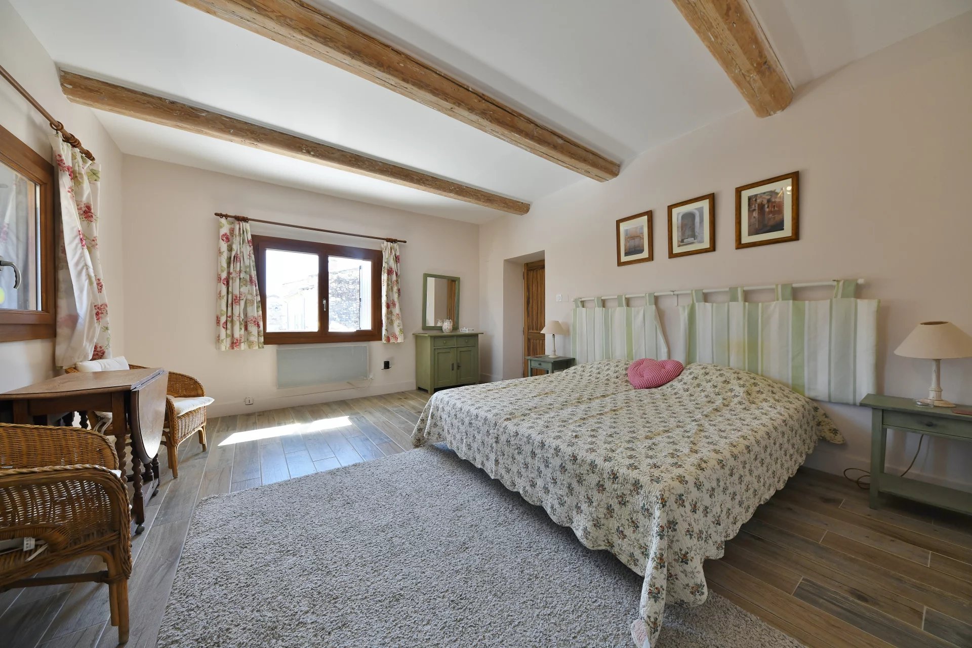 Raised on 2 levels on the ground floor, it offers beautiful volumes and a warm living environment with exposed stones and consists of a bright living room with fireplace, kitchen, 3 bedrooms, 2 bathrooms/shower, 2 WC, roof terrace on the 2nd floor with open views perfect for moments of relaxation.