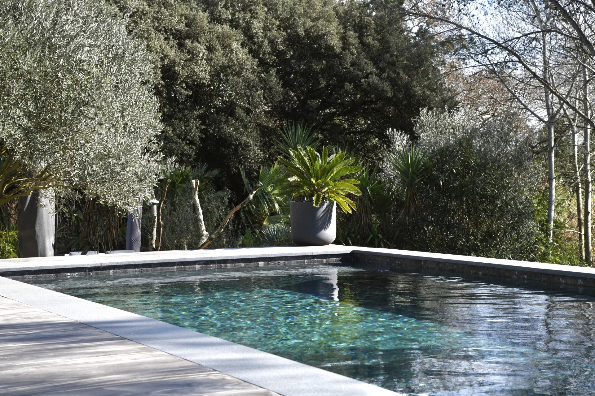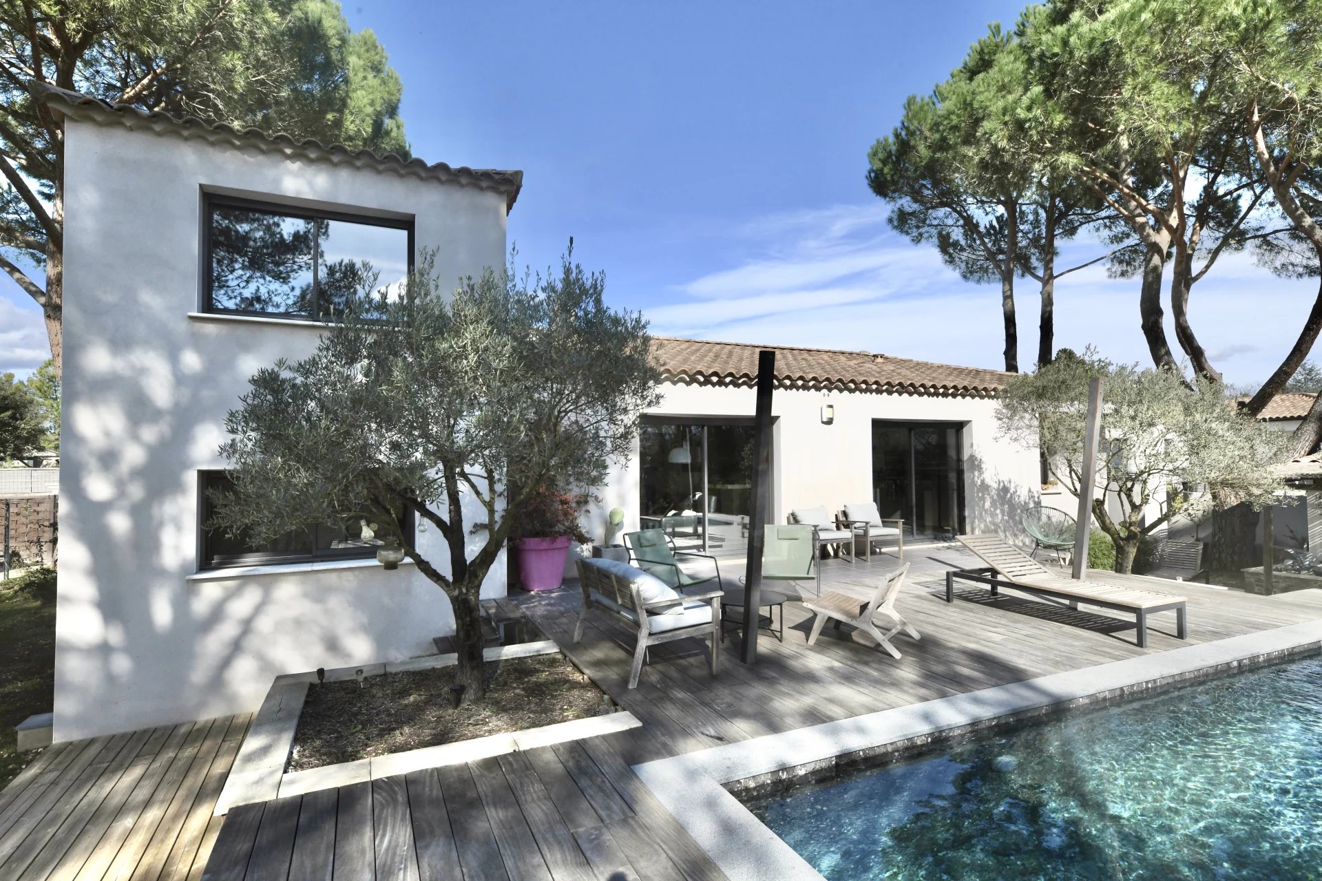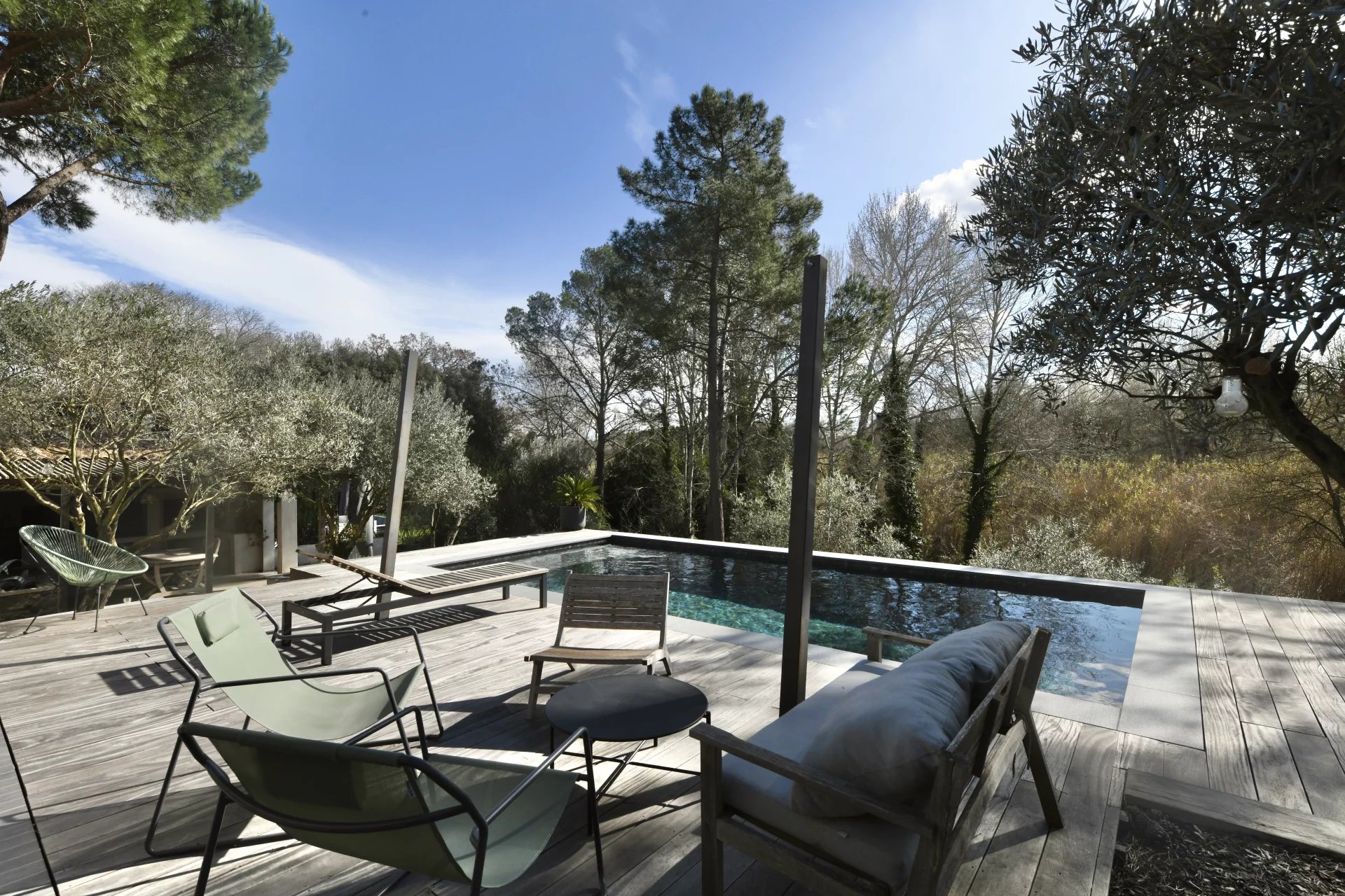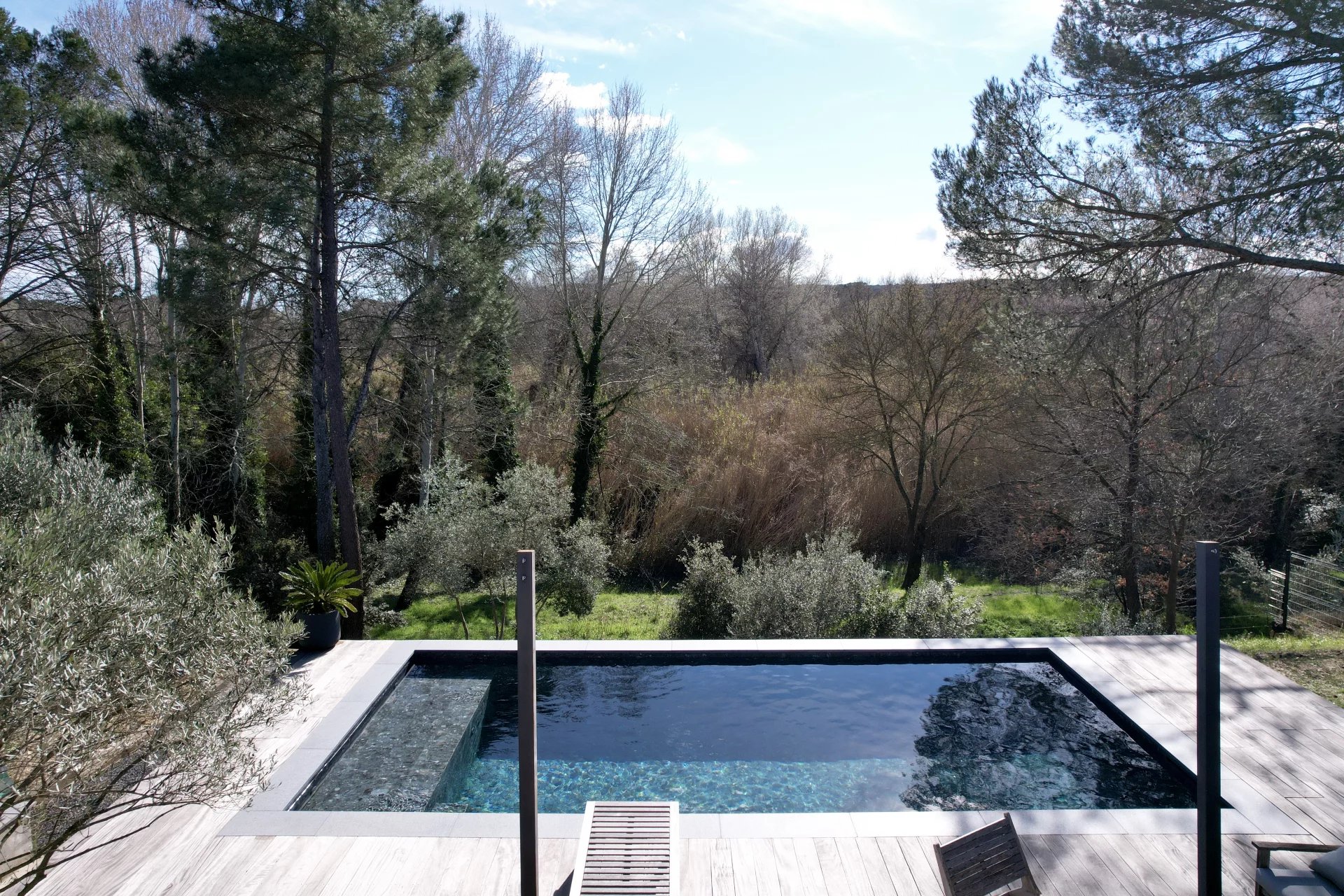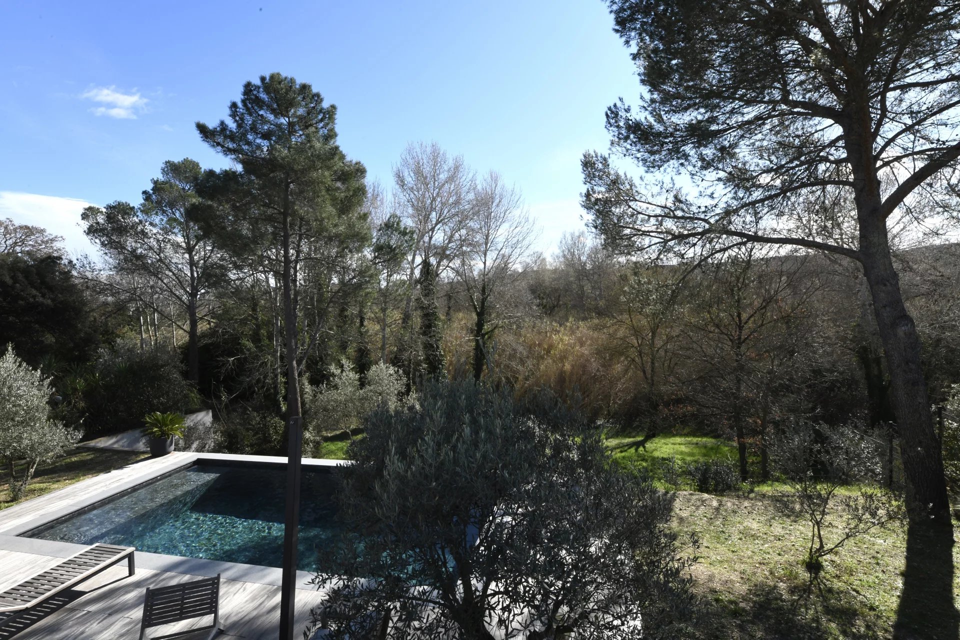 Contemporary villa with pool and wooded garden