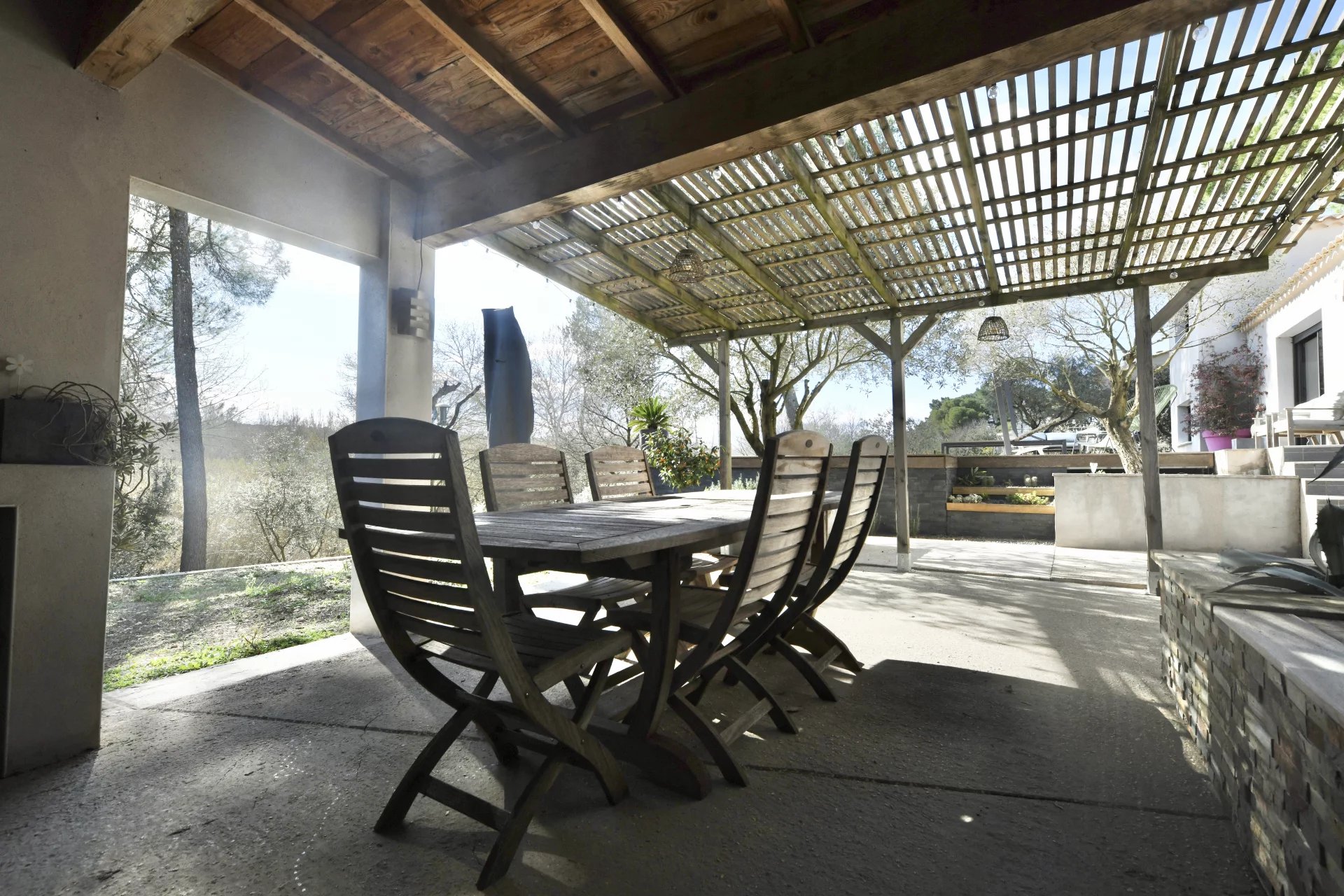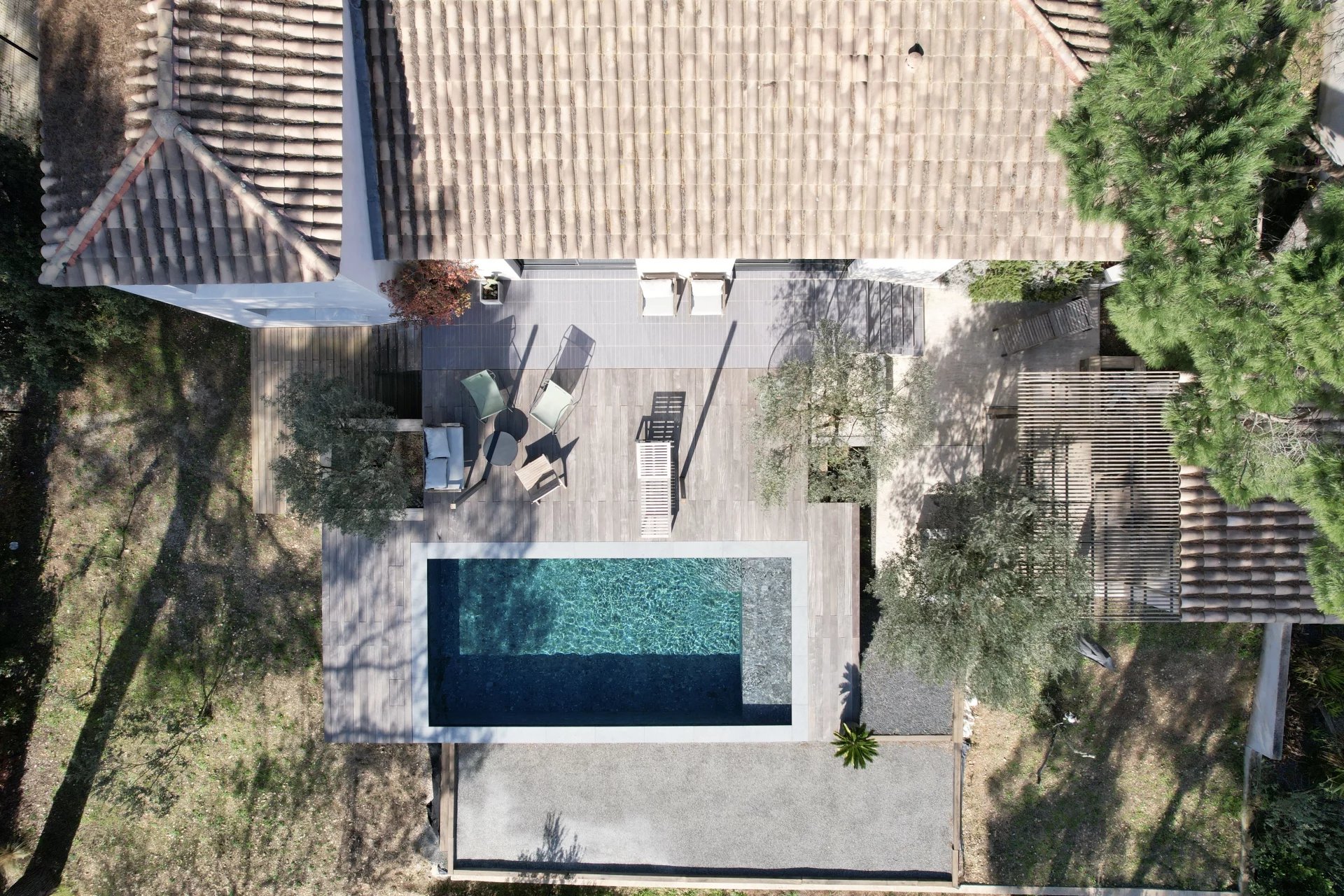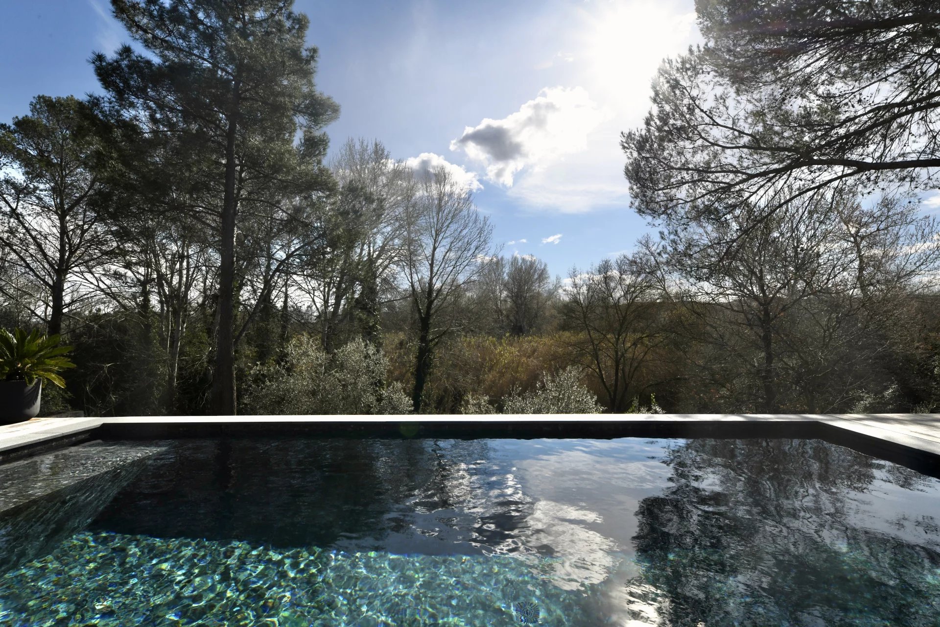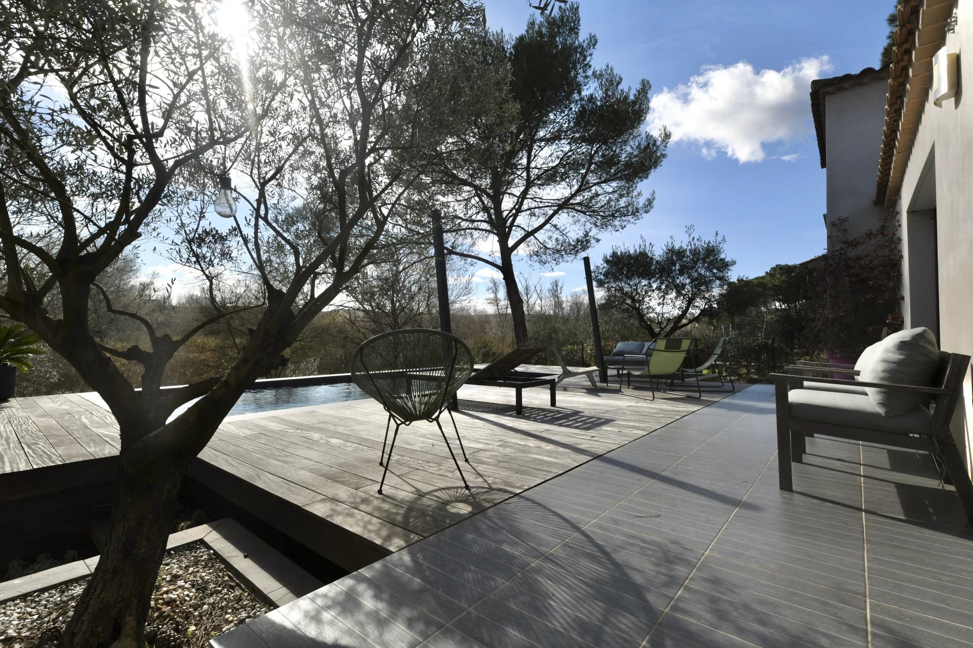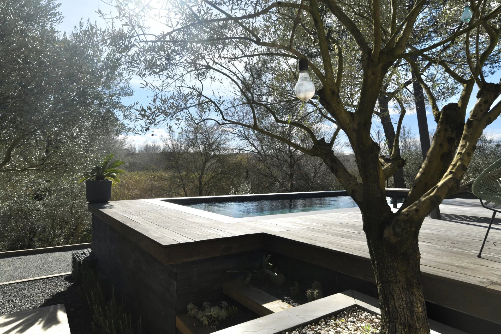 Contemporary villa with pool and wooded garden