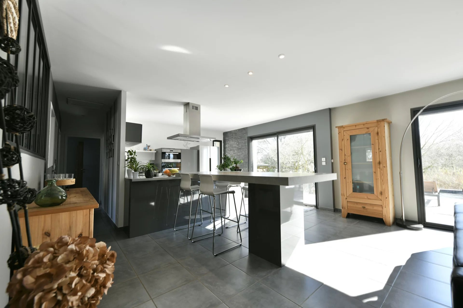 Located 20 minutes from Uzès, this contemporary villa with approximately 133 m² of living space offers a pleasant living environment in a popular village in the region with shops.