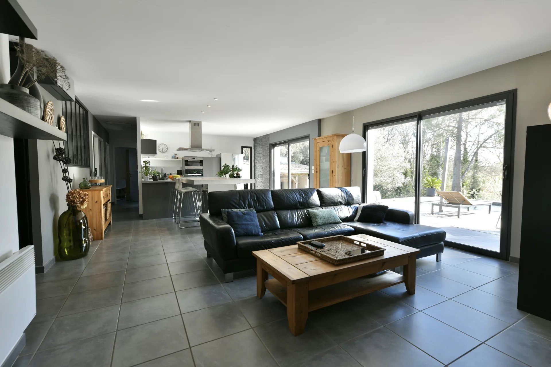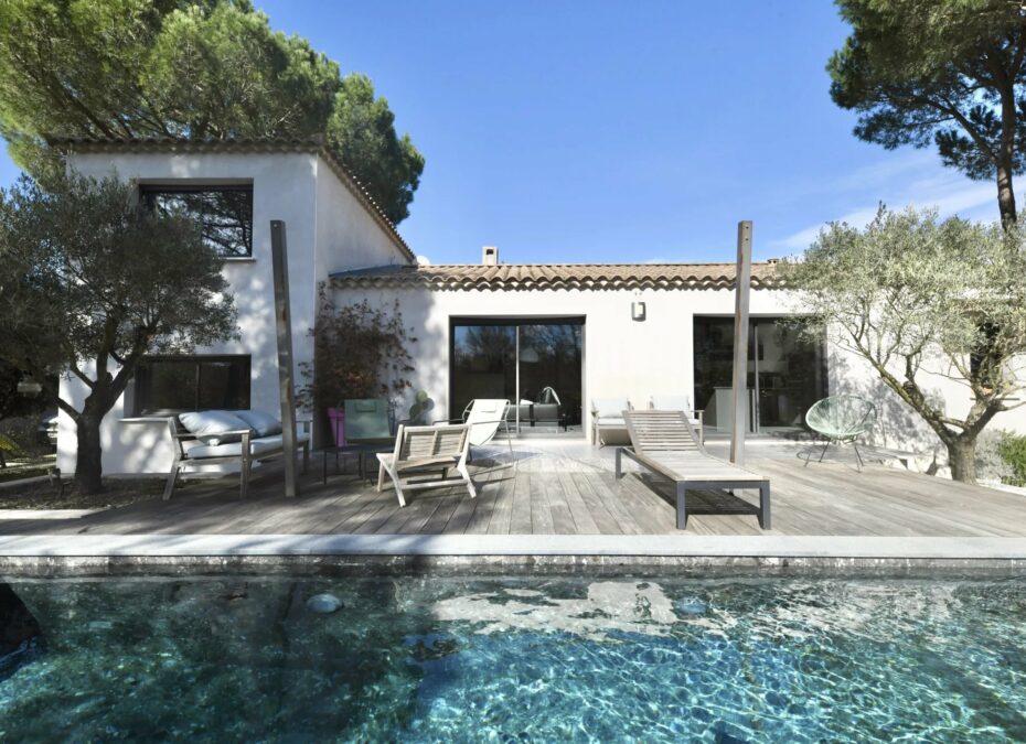 Contemporary villa with pool and wooded garden