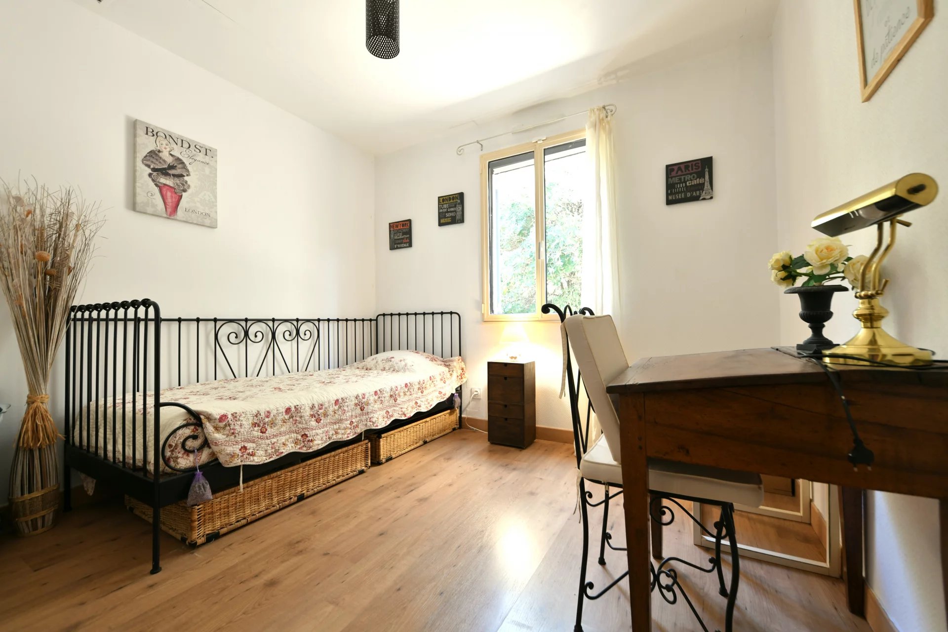 Lastly, an ample garage (27m²) ideal for stocking garden materials, tools, etc…can easily be transformed into an additional bedroom.