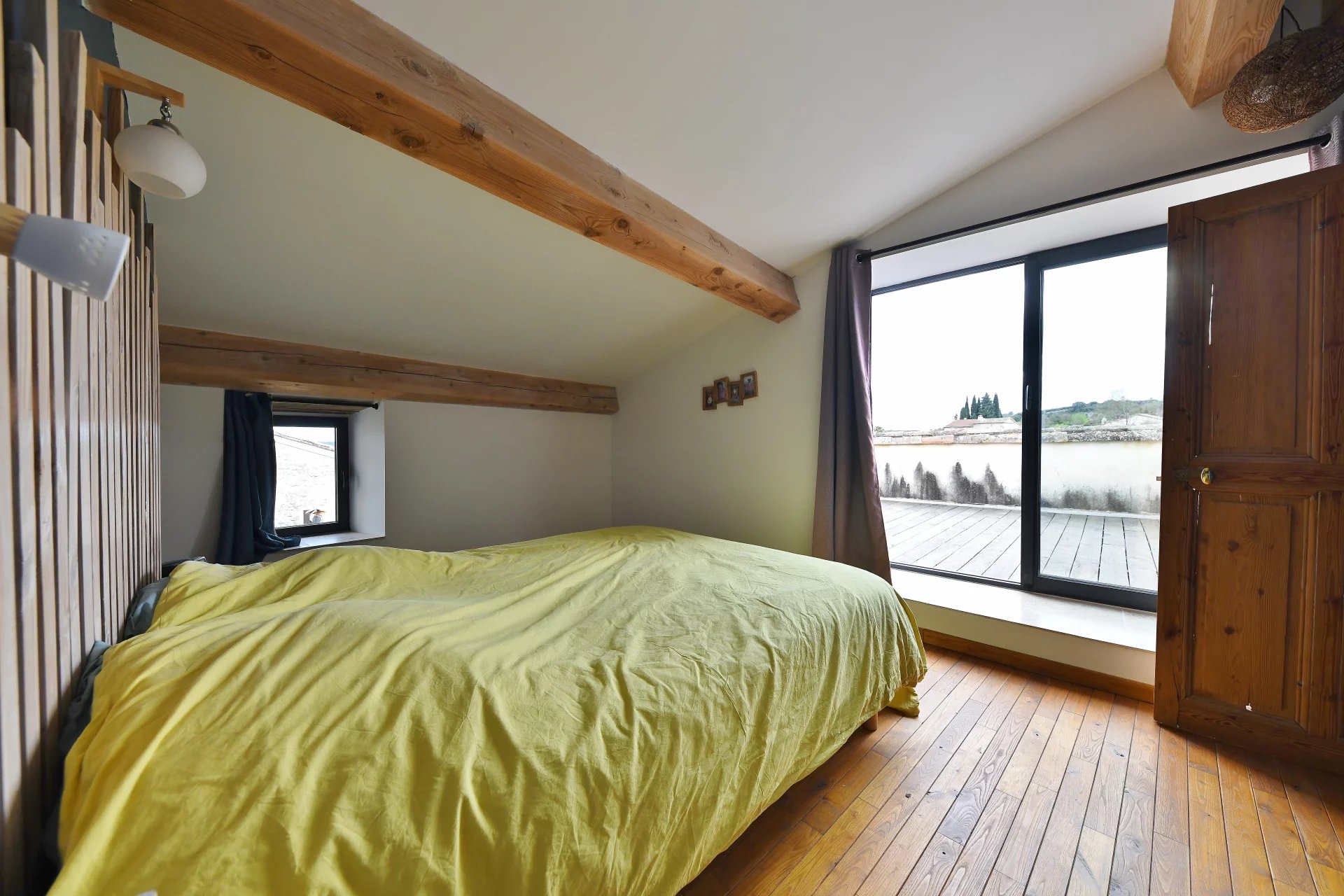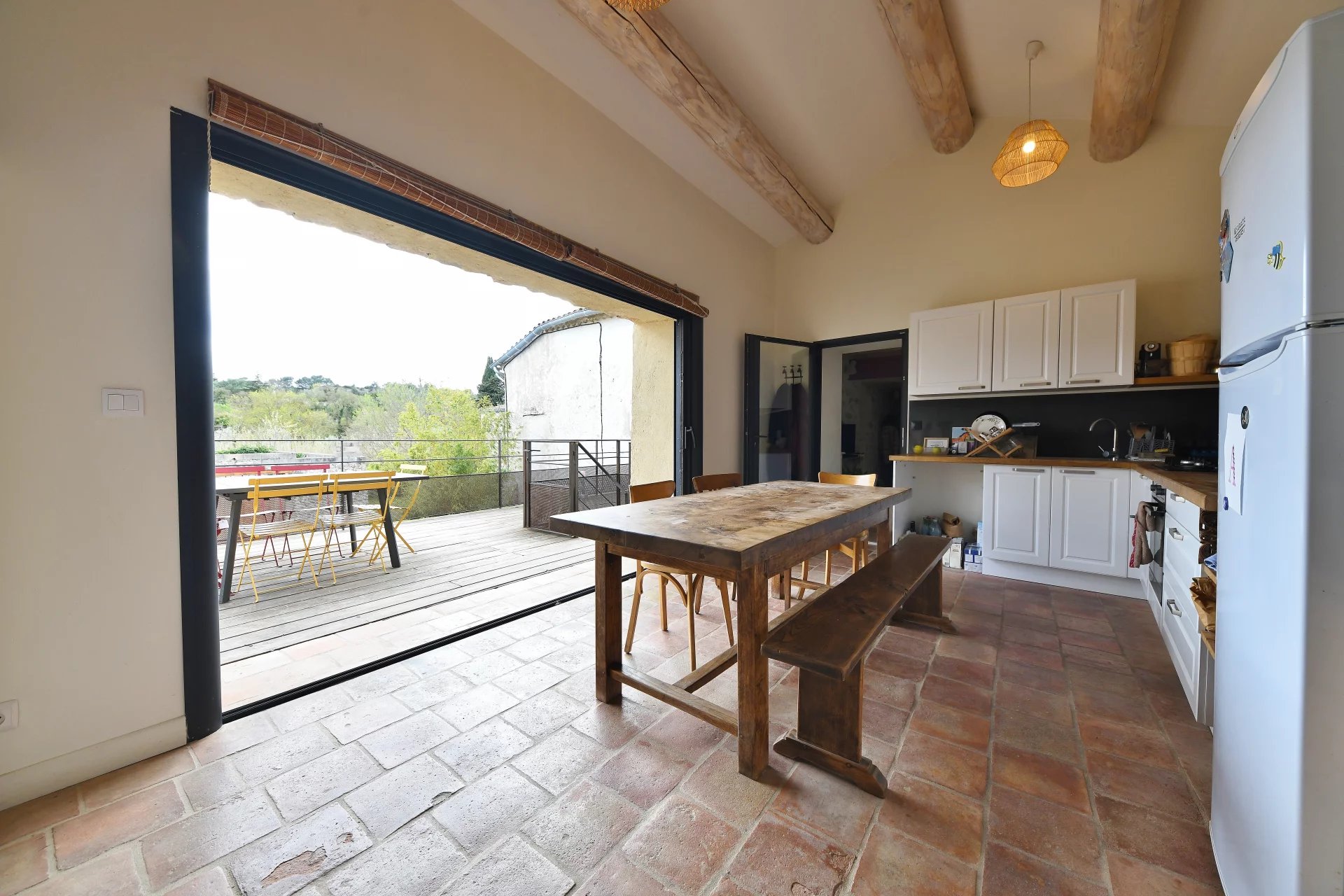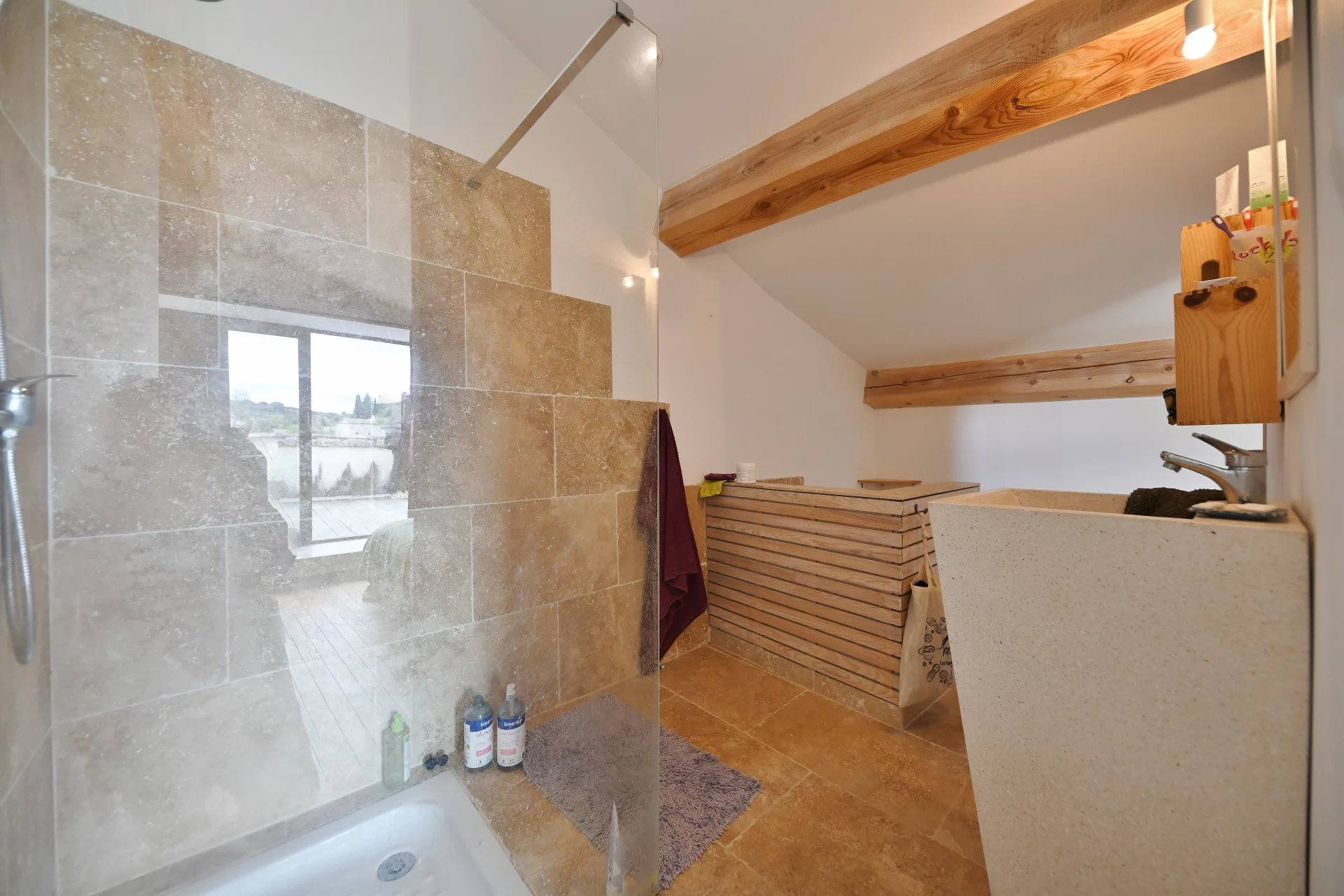 20 minutes from Uzès, charming stone house of about 185 m 2, built on 3 levels, offering beautiful volumes and quality renovation with carefully selected materials.