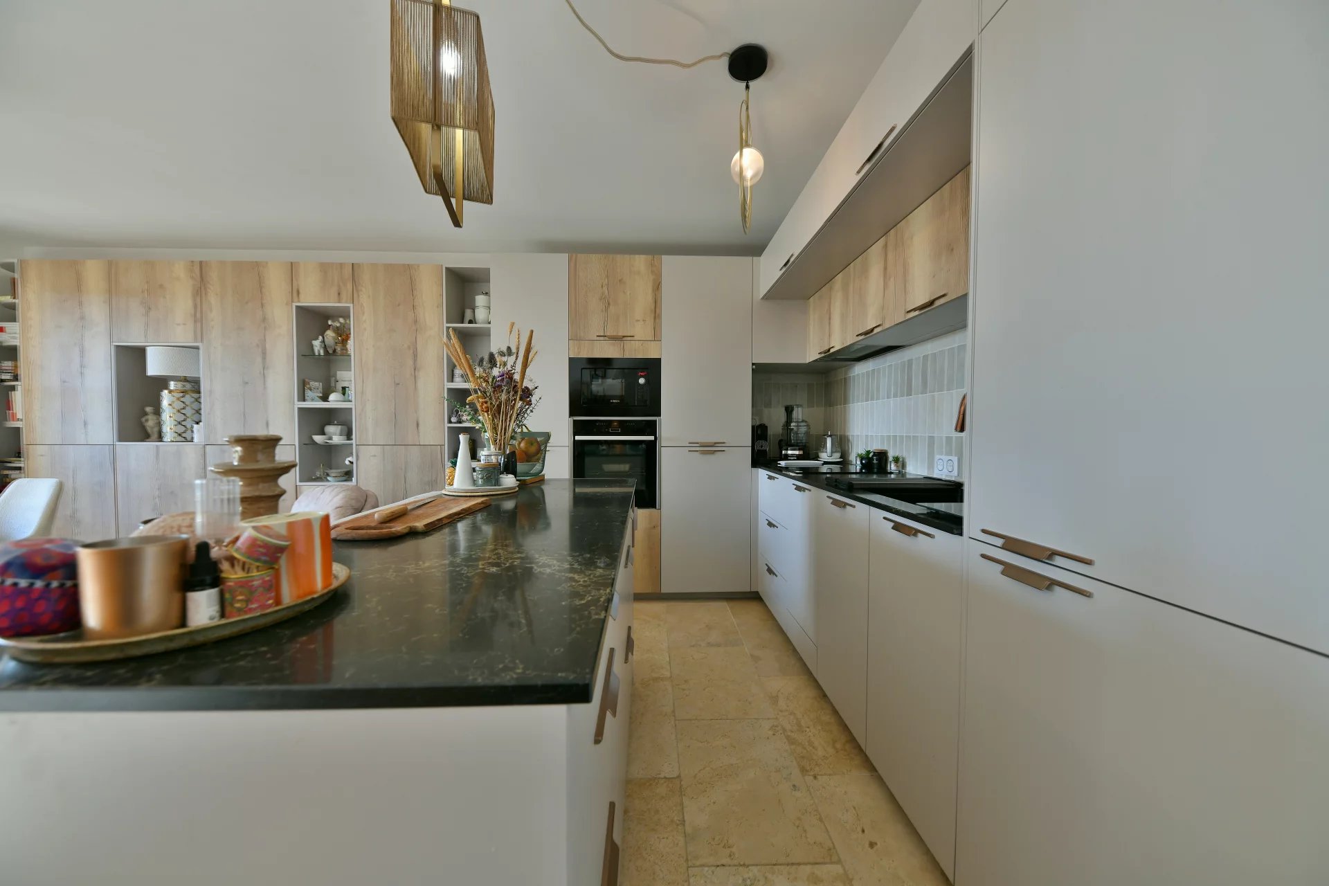 Open-plan kitchen with bespoke fittings.